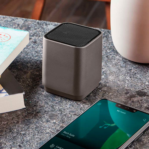 Bocina bluetooth con bateria recargable. Reproduccion de musica de 1.5 hrs aproximadamente. Cable cargador USB incluido. Logotipo se ilumina al grabar. Este producto por ser ultimas piezas puede presentar alguna variacion, no se aceptan devoluciones.