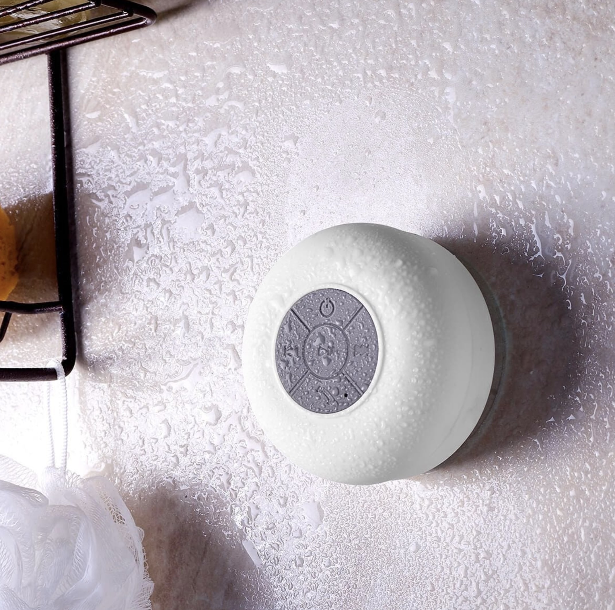 Bocina bluetooth con bateria recargable. Resistente a salpicaduras de agua. Ventosa de fuerte fijacion para superficies lisas. Reproduccion de musica 6 hrs aproximadamente. Funcion manos libres. Controles de volumen, reproduccion de audio y microfono. Incluye cable cargador USB.