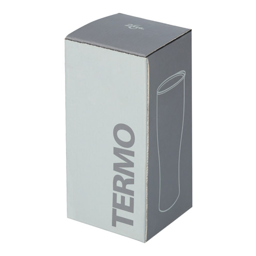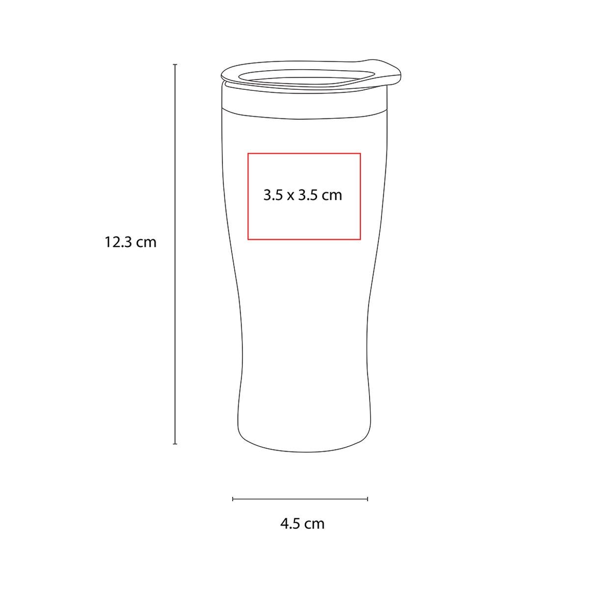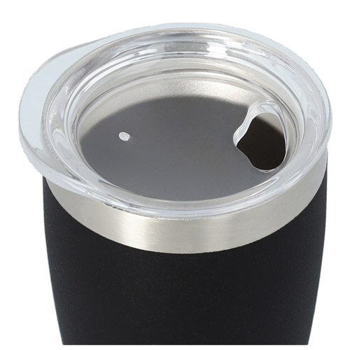 Doble pared. Cerrado al vacio. Pared interna y externa acero inoxidable. Incluye tapa de plástico. Mantiene temperatura caliente 6 hrs y temperatura fria 8 hrs aproximadamente. Color negro con recubrimiento en terminado tipo rugoso. Incluye caja individual.