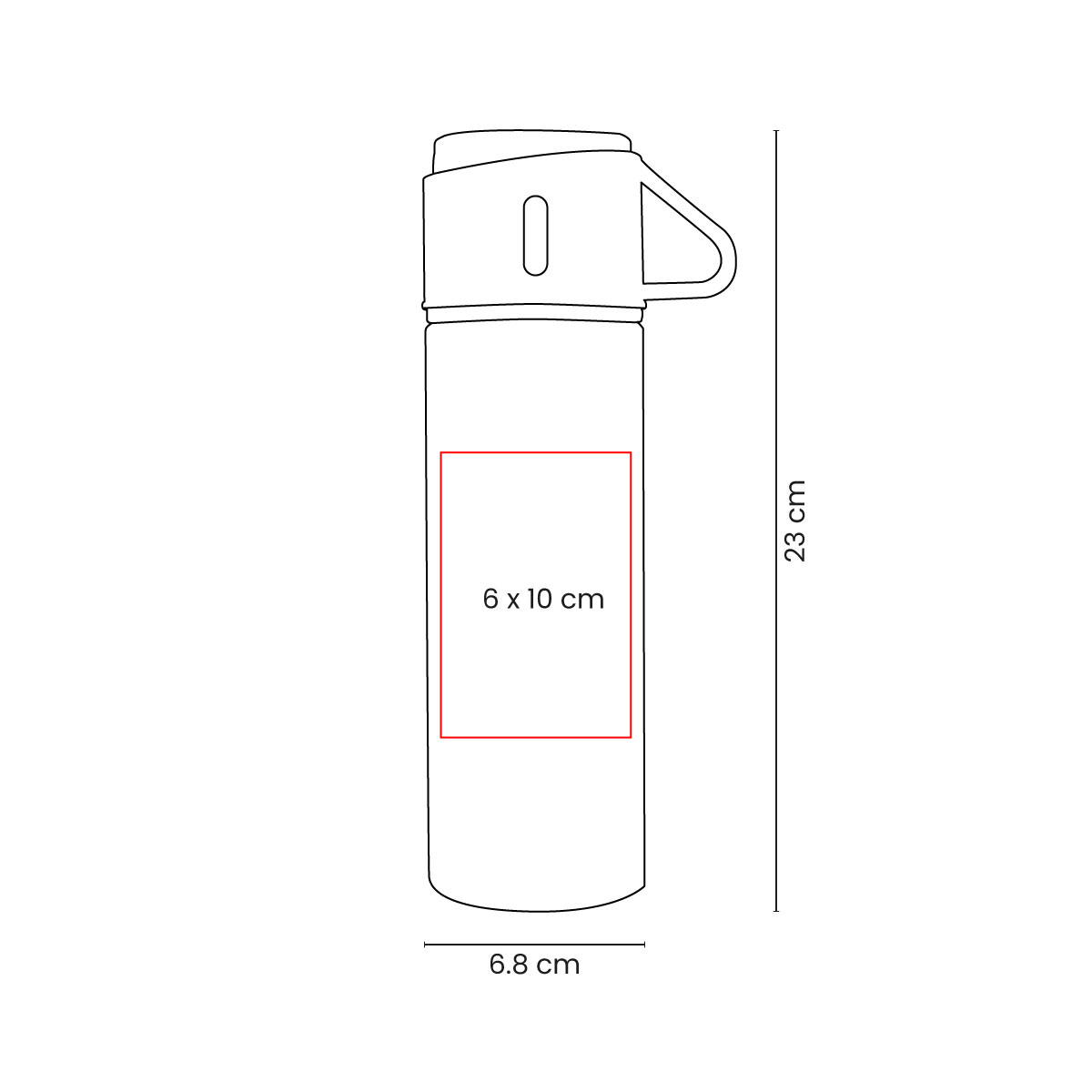 Tamaño del producto: 6.8 x 23 cm Termo / 5.9 x 5.9 cm Tazas / 30.5 x 7.3 x 23.5 cm Caja
