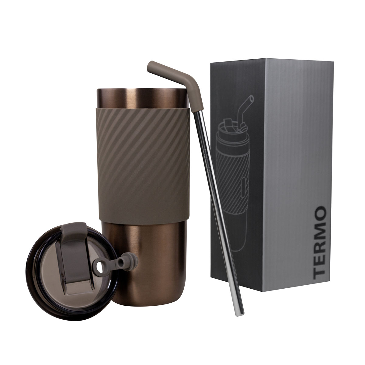 Doble pared. Cerrado al vacio. Pared interna y externa de acero inoxidable.Tapa con sistema de rosca, sobretapa de push y ranura especial con tapon para popote. Incluye popote metalico con boquilla de silicon. Banda de silicon antiderrapante. Mantiene la temperatura caliente por 6 hrs y fria 12 hrs aproximadamente.Caja individual incluida.