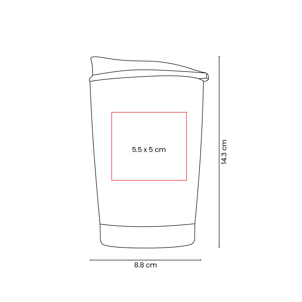 Termo doble pared. Cerrado al vacio. Pared interna y externa de acero inoxidable. Tapa de plástico con valvula de seguridad y diseno ergonomico en la boquilla. Su cuerpo con terminado rubber lo hace suave al tacto y ayuda a tener un mejor agarre. Mantiene la temperatura caliente 6 hrs y temperatura fria 12 hrs aproximadamente. Capacidad de 12 Oz. Base de 7.2 cm de diametro Incluye caja individual.