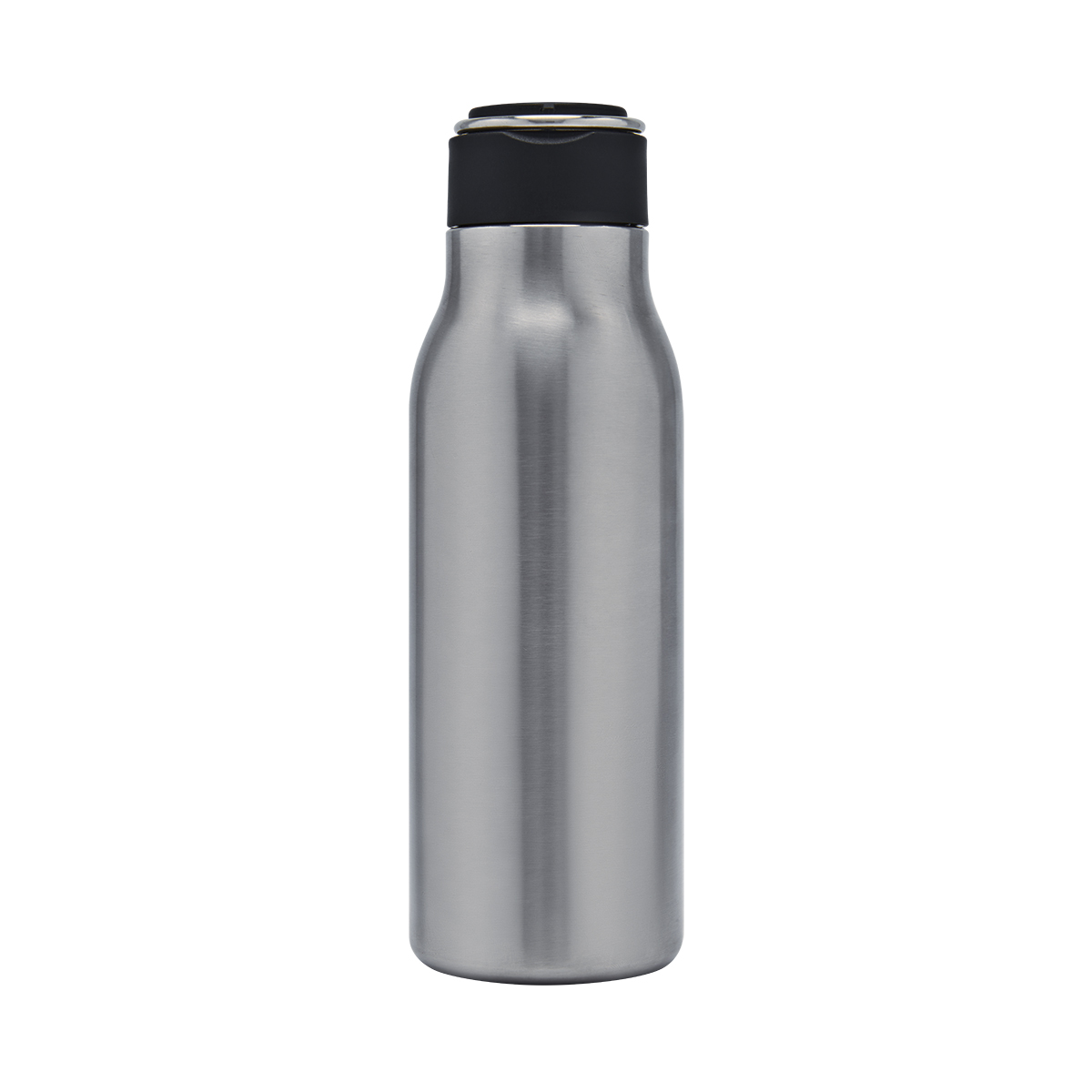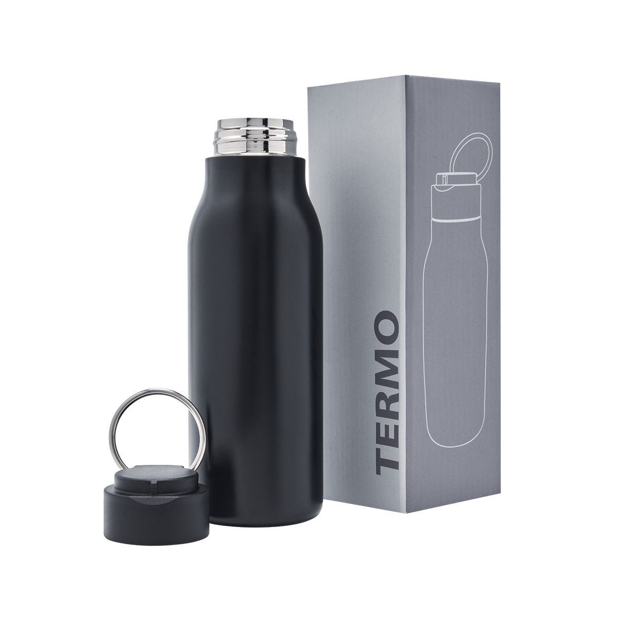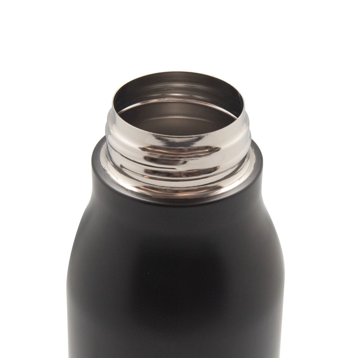 Cilindro metalico de una pared y tapa de plastico con cierre de rosca. Incluye aro metalico en la tapa que funciona como asa. Terminado mate. Incluye caja individual.