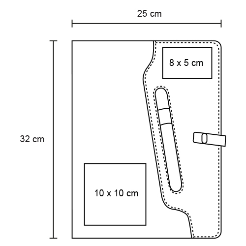 Carpeta multiusos con exterior de poliéster, broche y compartimento externo para bolígrafo. Cuenta con block de notas tamaño carta de 30 hojas rayadas, cintas elásticas para sujetar Smartphones y memorias USB u otros accesorios, compartimento con ventana plástica para credenciales, divisiones para tarjetas y bolsa de malla.