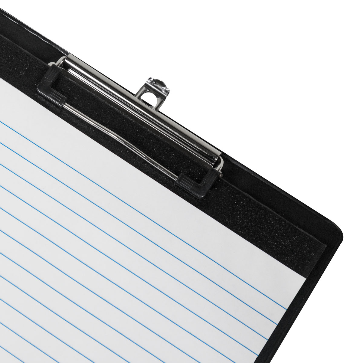 Carpeta de plástico con clip metalico. Incluye bloc de notas con 20 hojas. Cuenta con compartimento plegable para sostener un boligrafo. Cuenta con una pequena solapa interna para colocar hojas adicionales o tarjetas de manera ordenada y accesible.