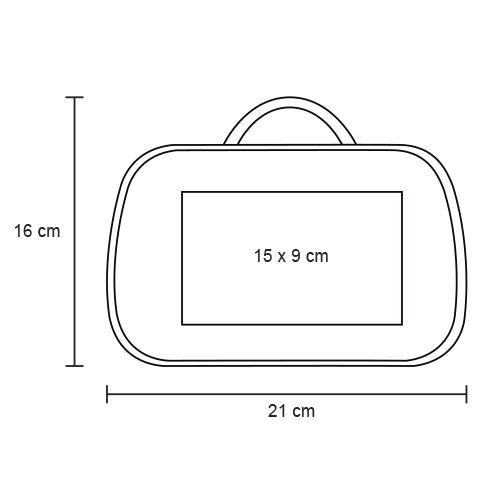 Cosmetiquera de poliéster con espejo y 2 separadores internos.