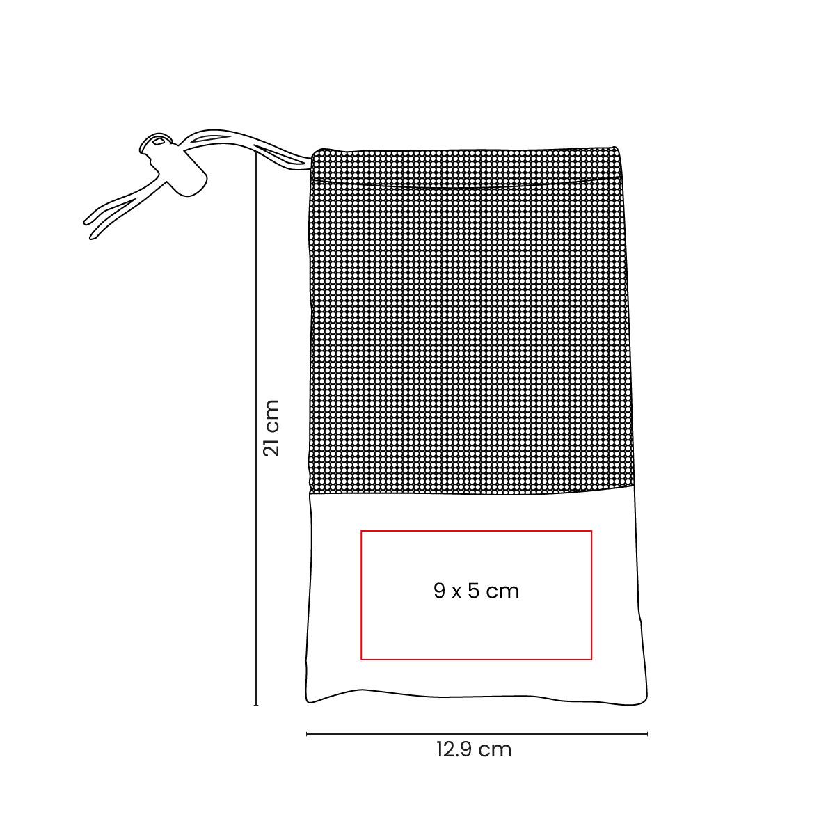 Tamaño del producto: 12.9 cm x 21 cm Bolsa / 30.5 cm x 4.9 cm Banda / 2.70 m Cuerda