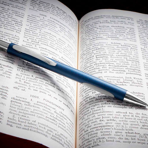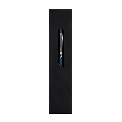 Boligrafo con grip antiderrapante en los costados. Mecanismo pulsador. Incluye estuche.