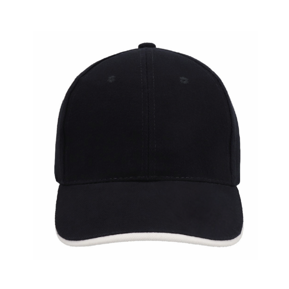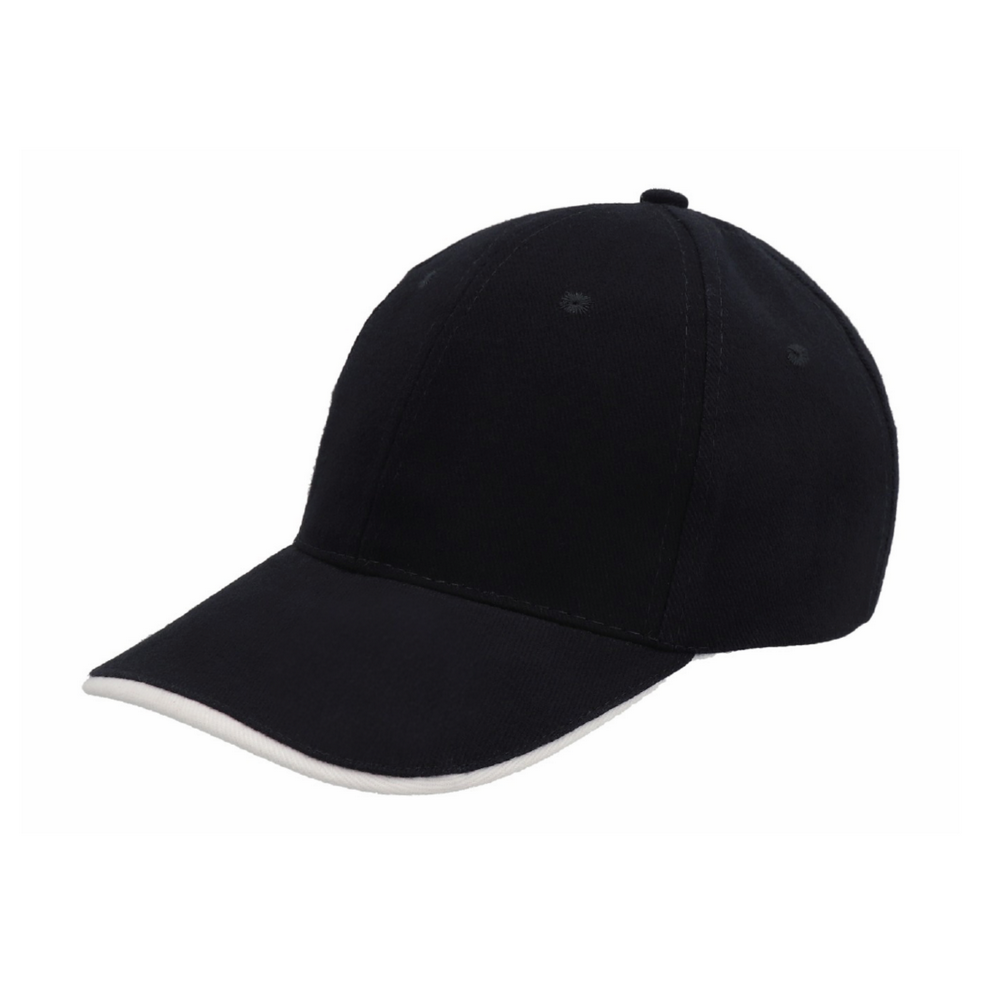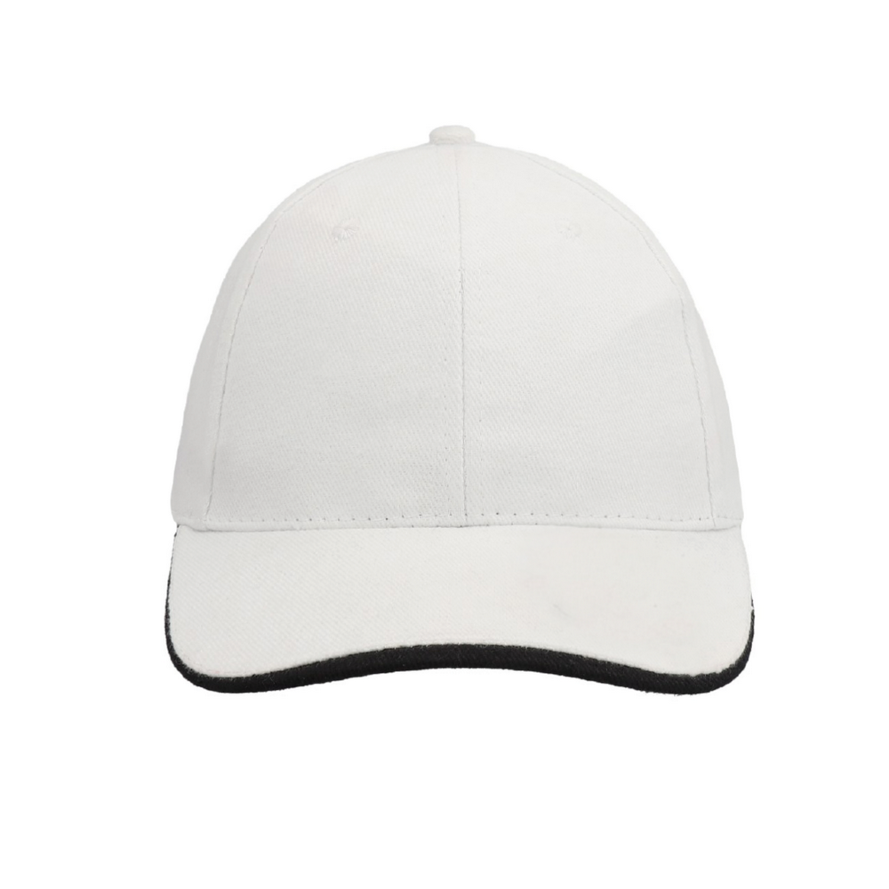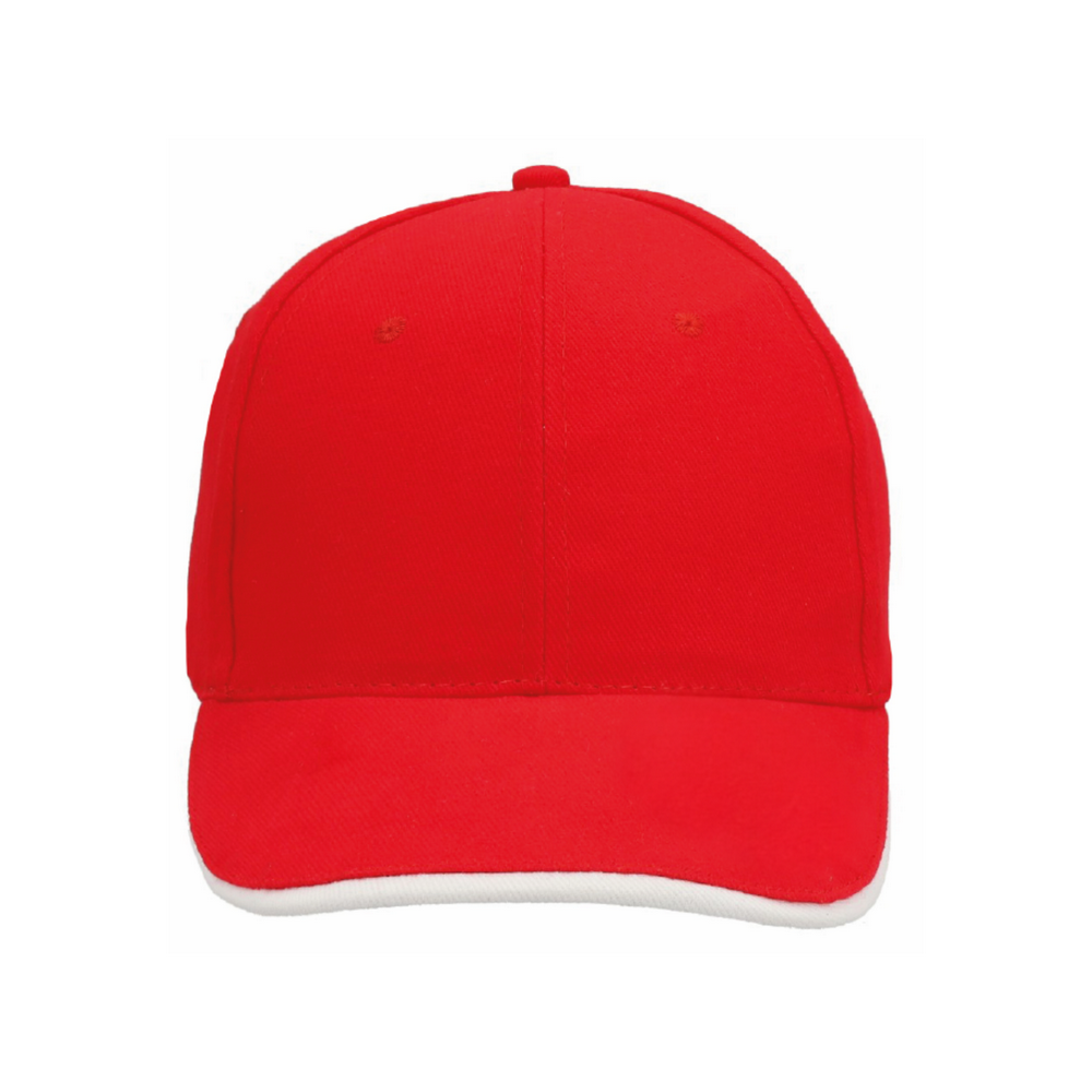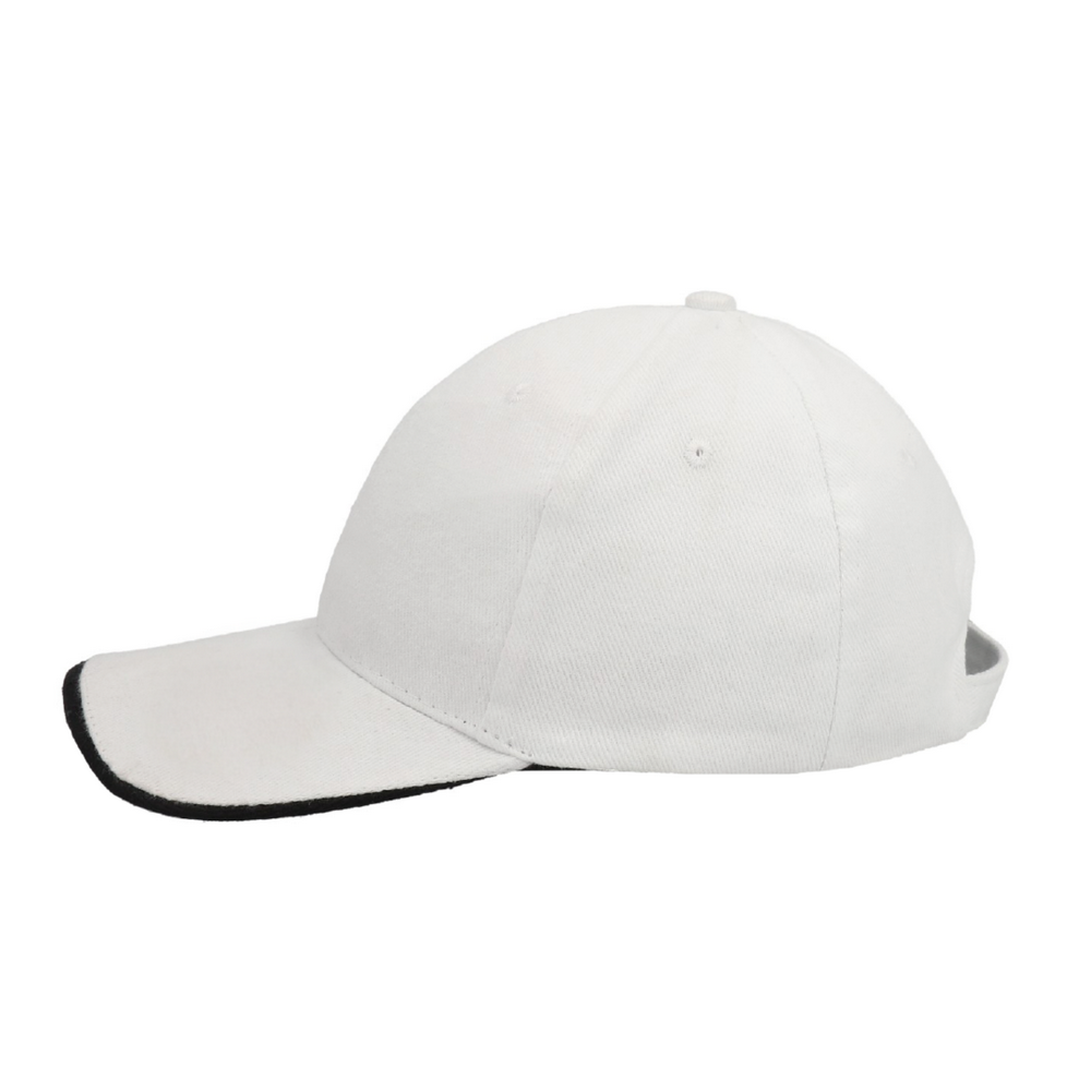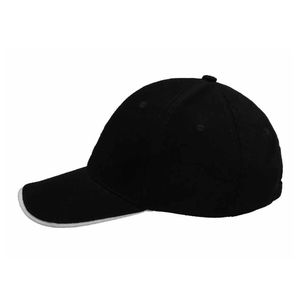 GORRA 100% ALGODÓN TACTO SUAVE CON AJUSTE DE HEBILLA METALICA, CANTO EN VISERA EN CONTRASTE, 6 JAJOS, VISERA CURVA.