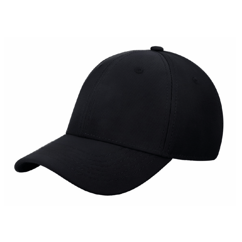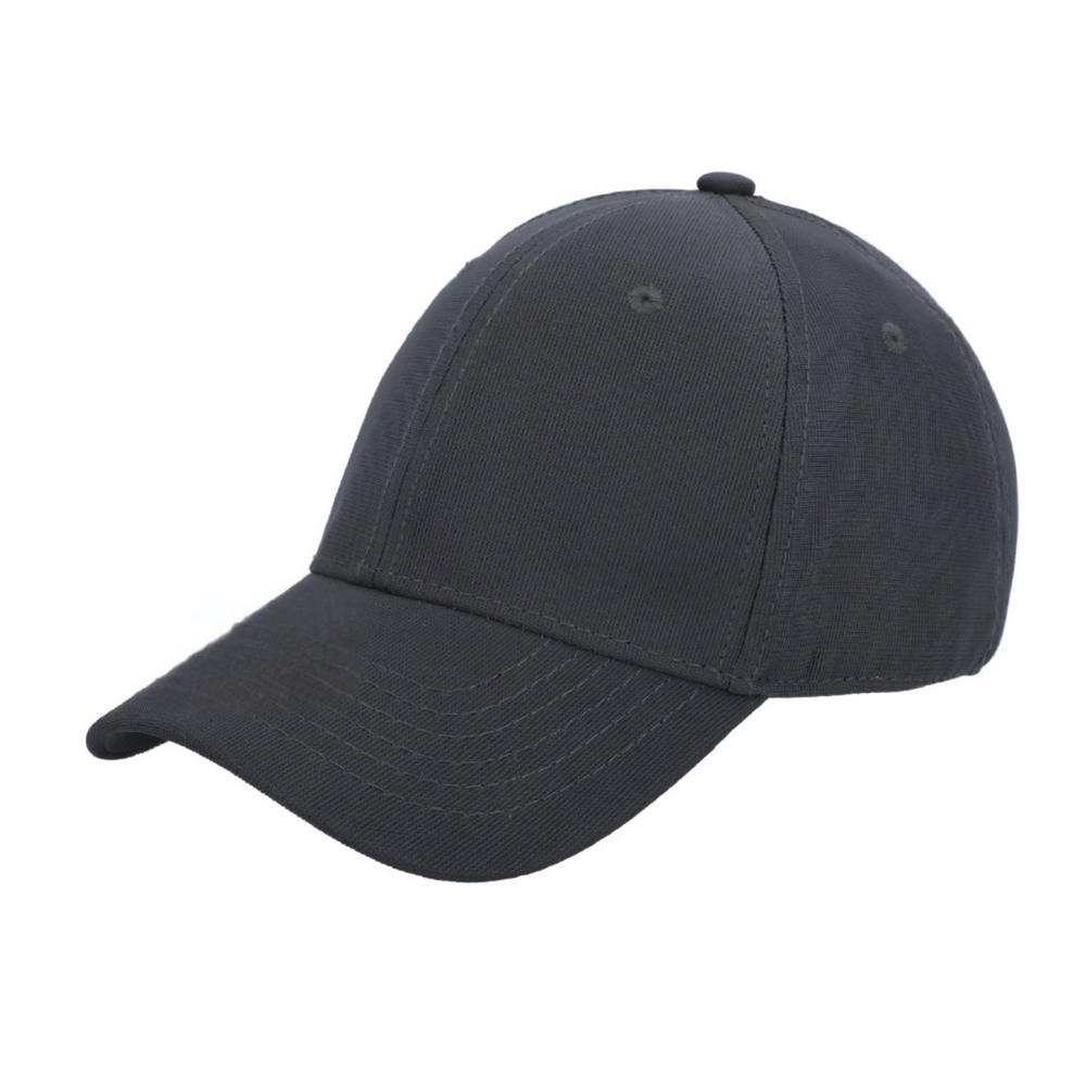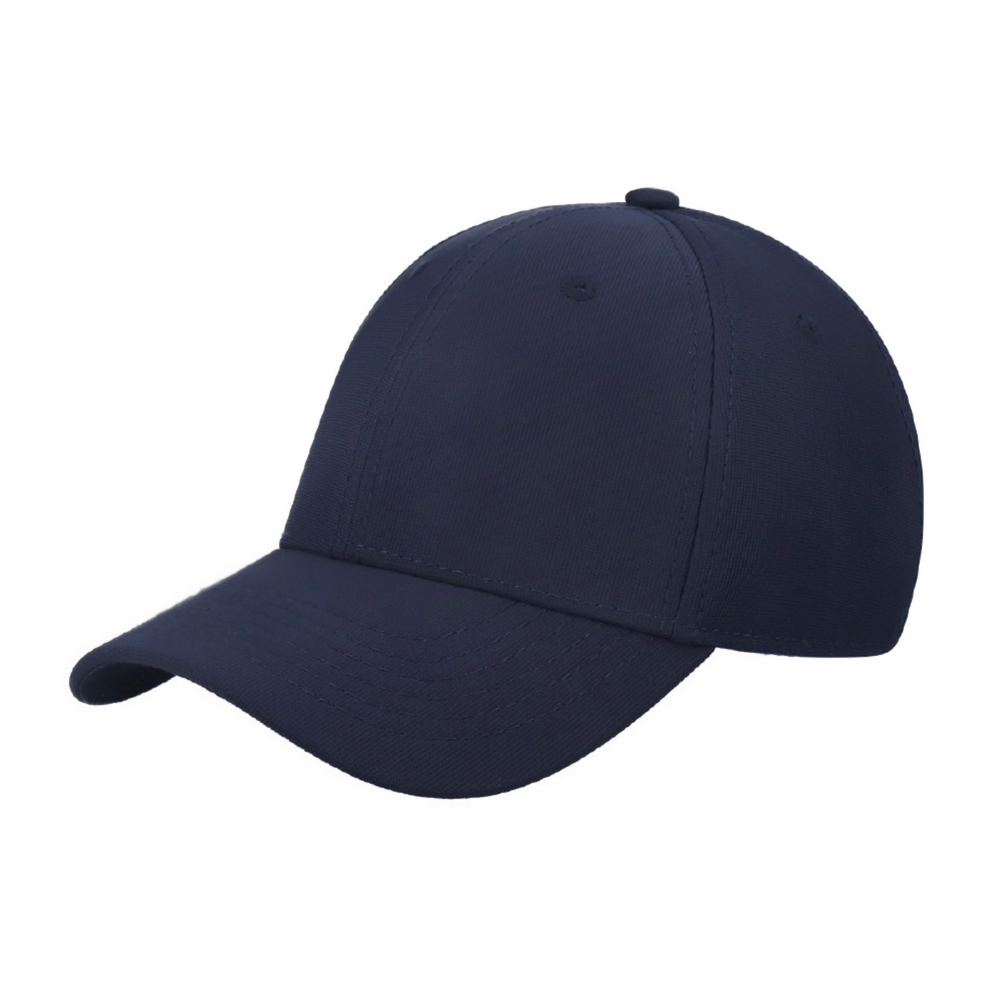 GORRA 94% POLIÉSTER 6% SPANDEX CON AJUSTE DE CINTURON METALICO, 6 GAJOS, VISERA CURVA.