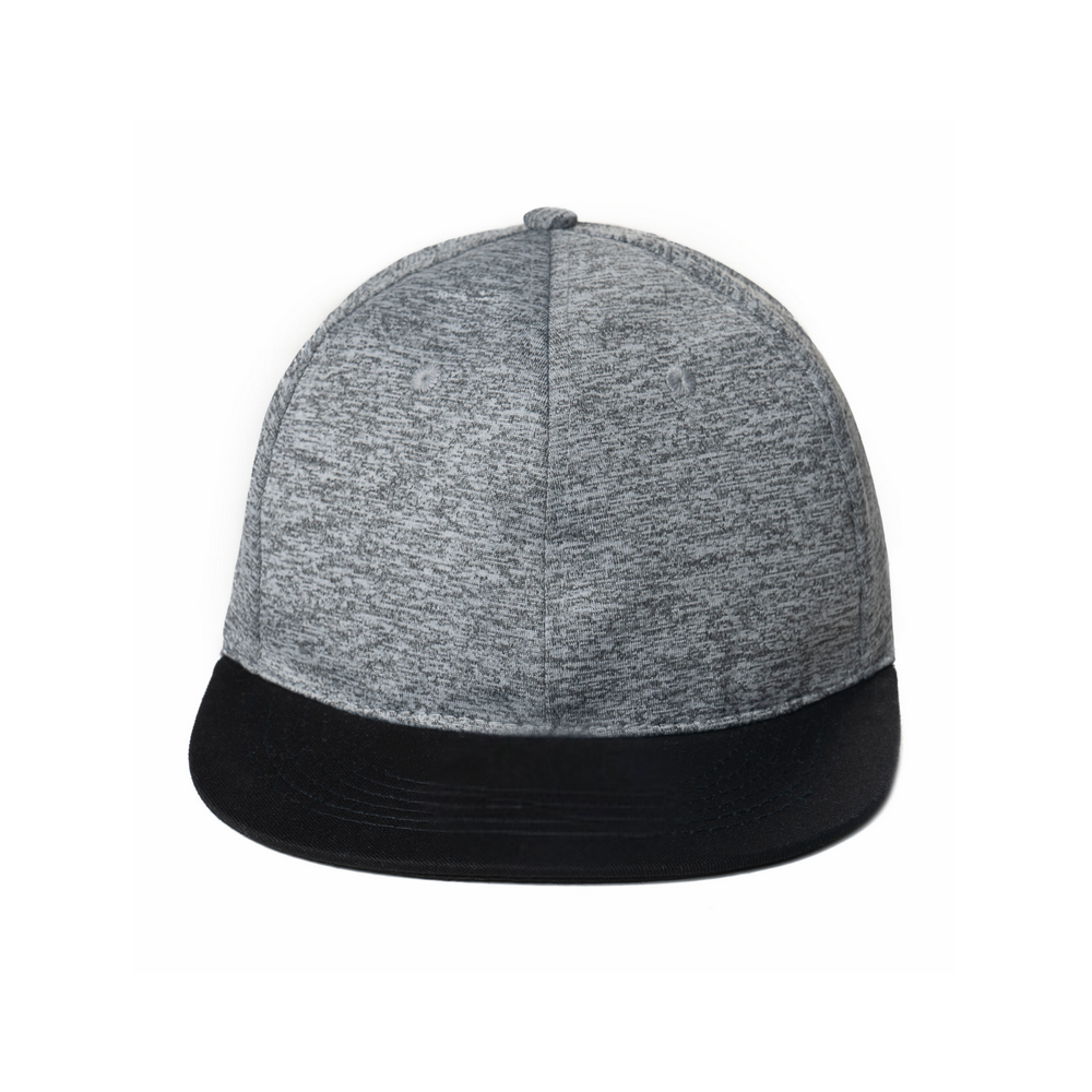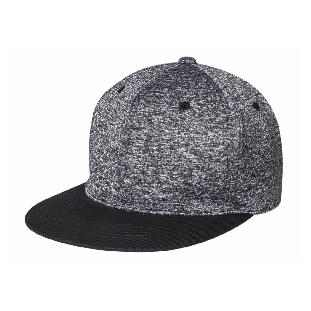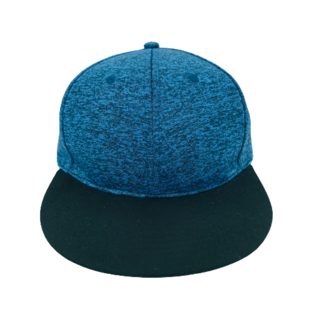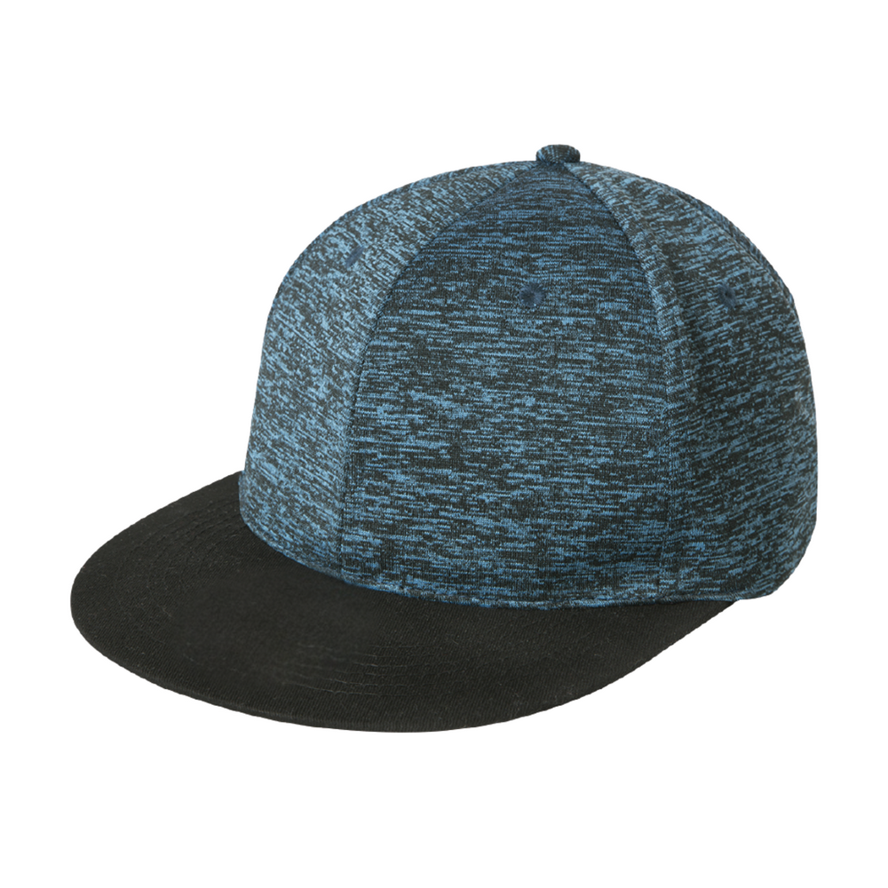GORRA 100% POLIÉSTER TACTO SUAVE CON ACABADO JASPEADO CON AJUSTE DE VELCRO, 6 GAJOS, VISERA PLANA.