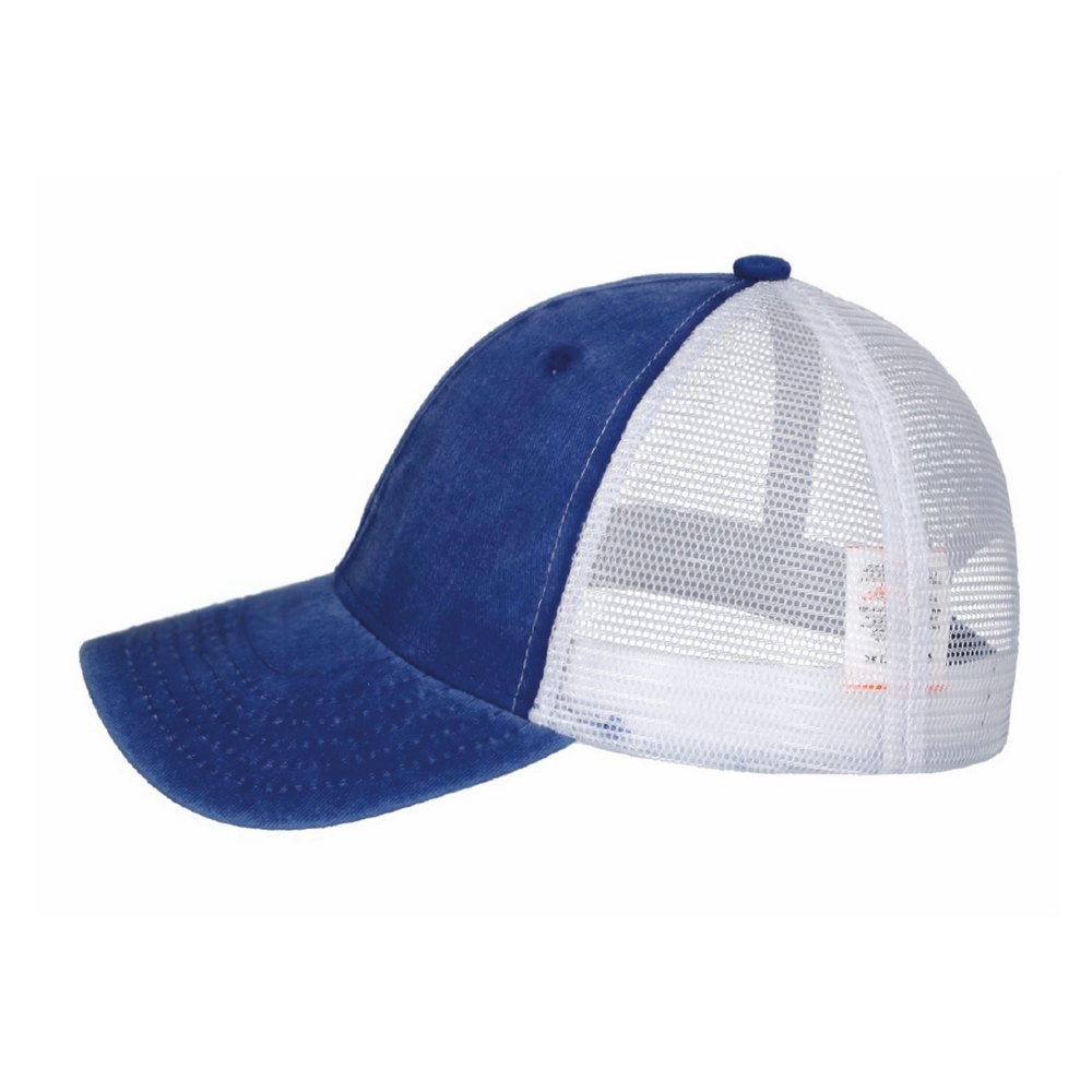 GORRA 100% ALGODÓN CON MALLA DE NYLON CON AJUSTE DE VELCRO, 6 GAJOS, VISERA CURVA.