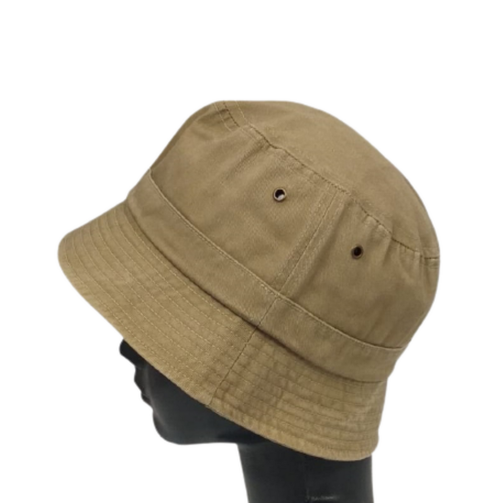 SOMBRERO 100% ALGODÓN ACABADO DESLAVADO CON CONSTURAS DE SEGURIDAD.
