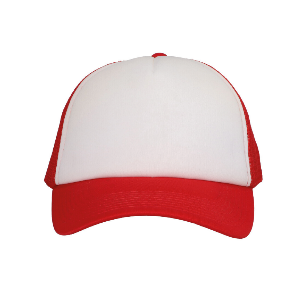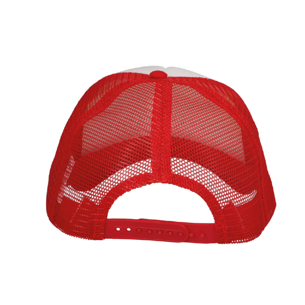 GORRA 100% POLIÉSTER CON AJUSTE plástico, FRENTE DE ESPONJA CONTRASTADO CON RED.