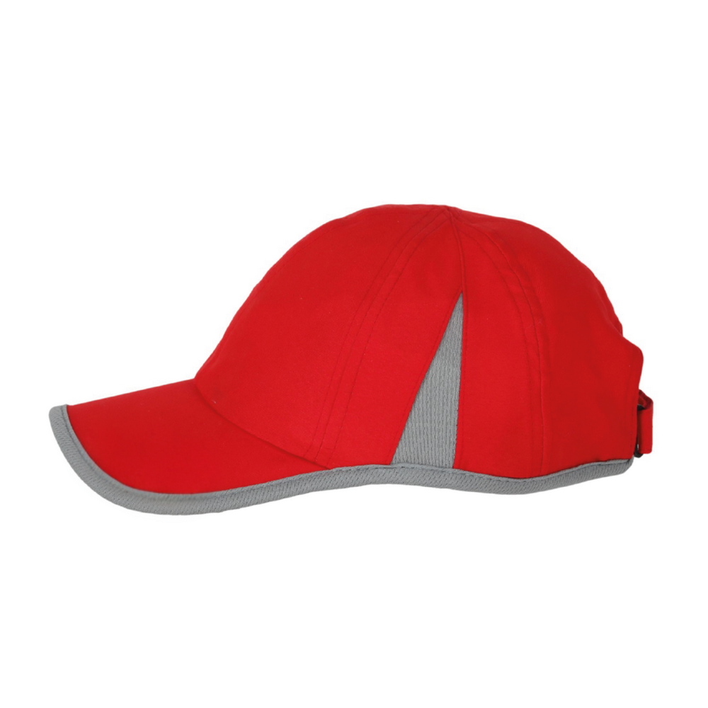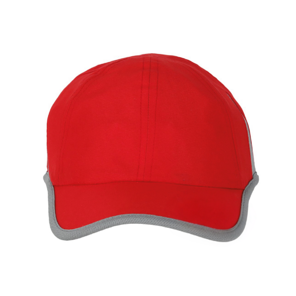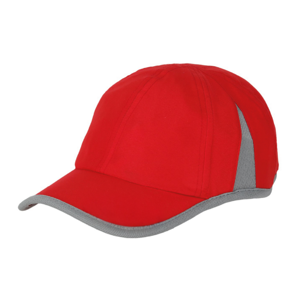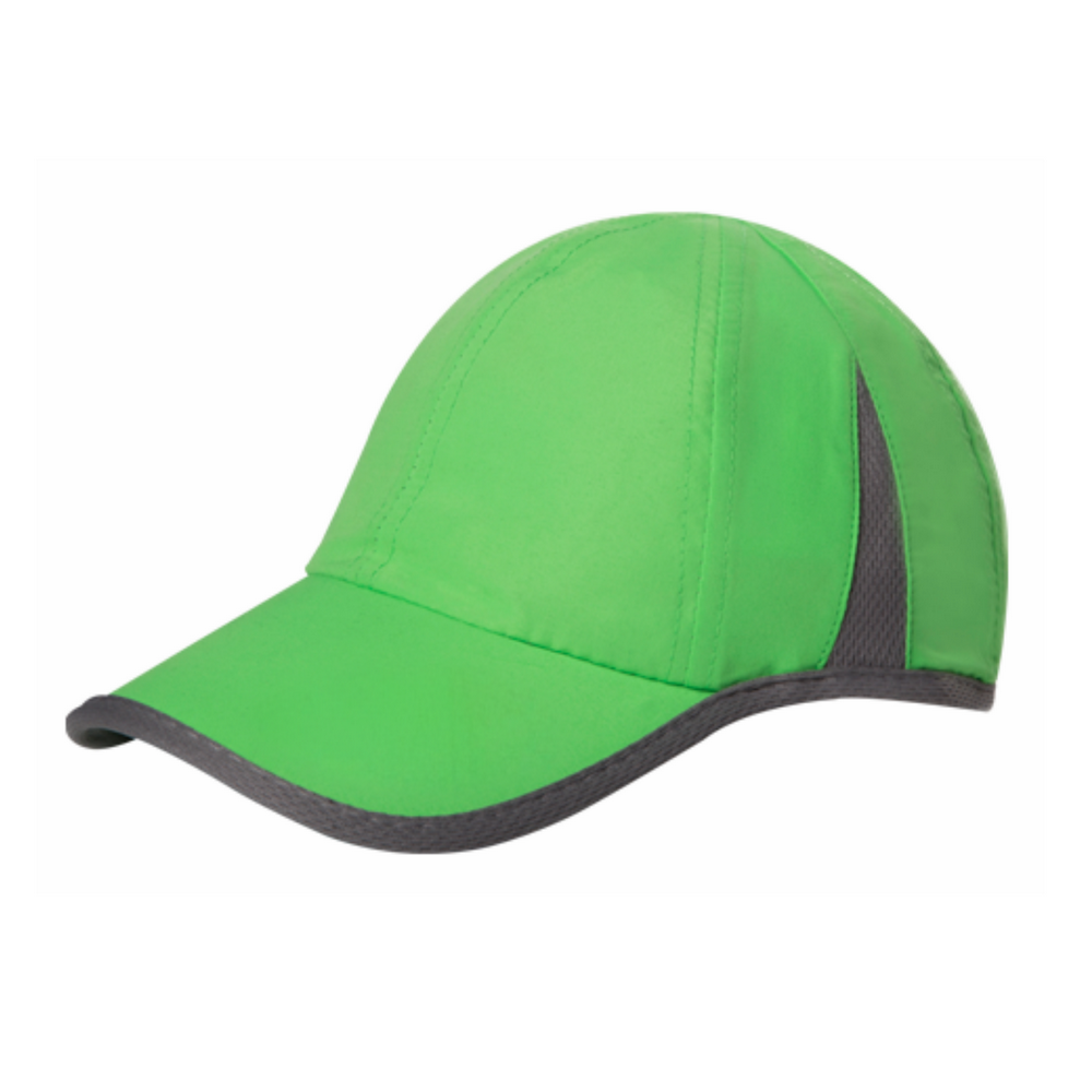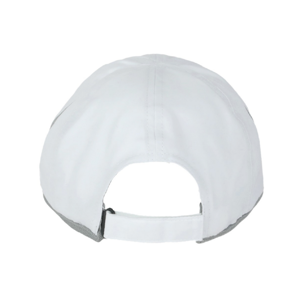 GORRA 100% MICROFIBRA DE poliéster CON AJUSTE CORREDIZO DE CINTURON, RESPIRADORES LATERALES, BANDA ABSORBENTE INTERIOR, FILO GRIS EN LOS COSTADOS, 6 GAJOS, VISERA CURVA.