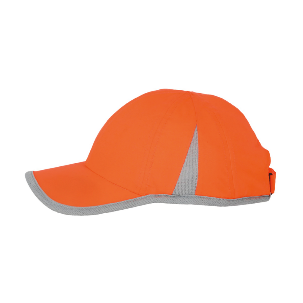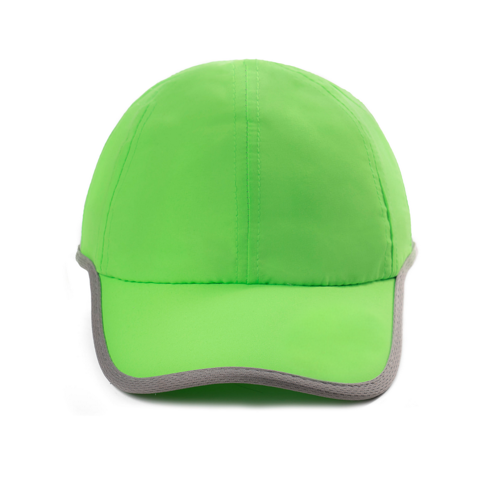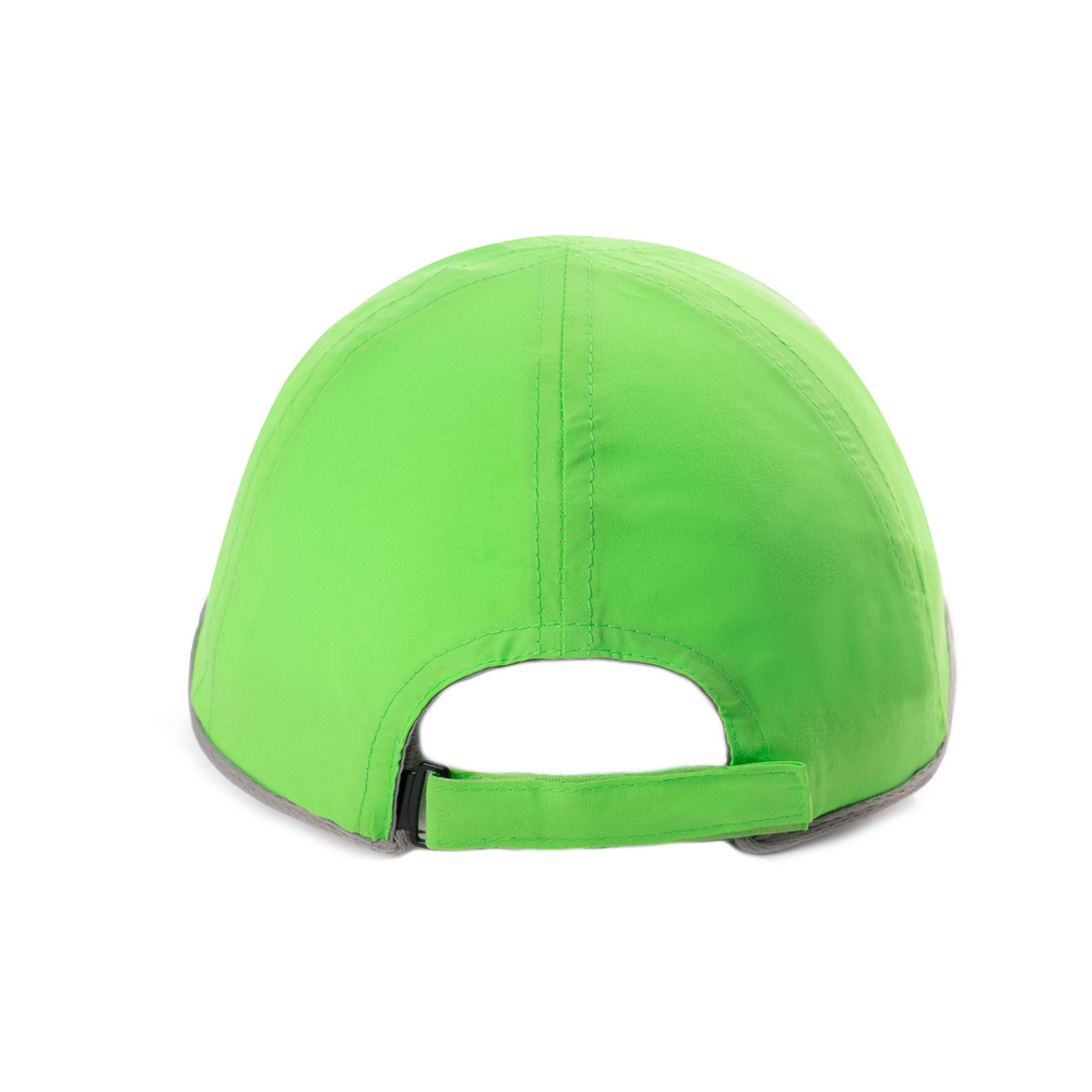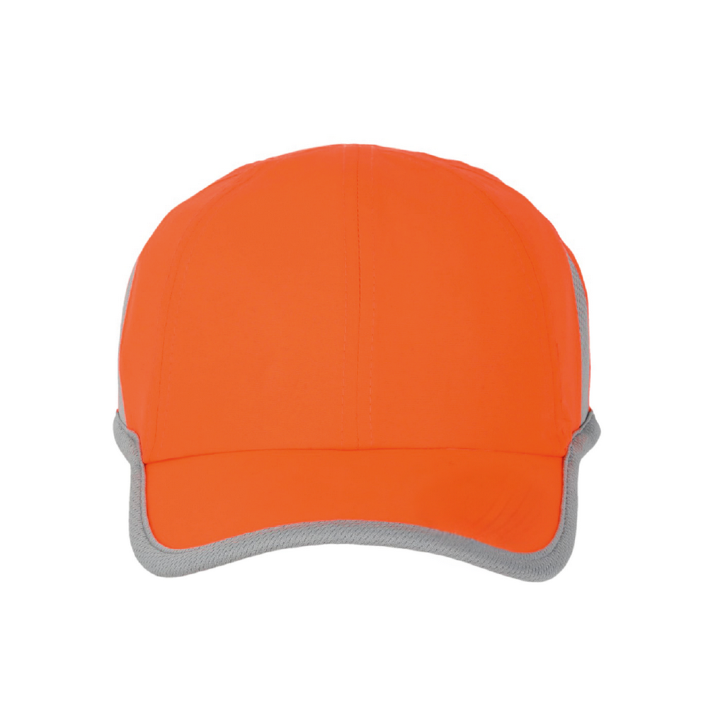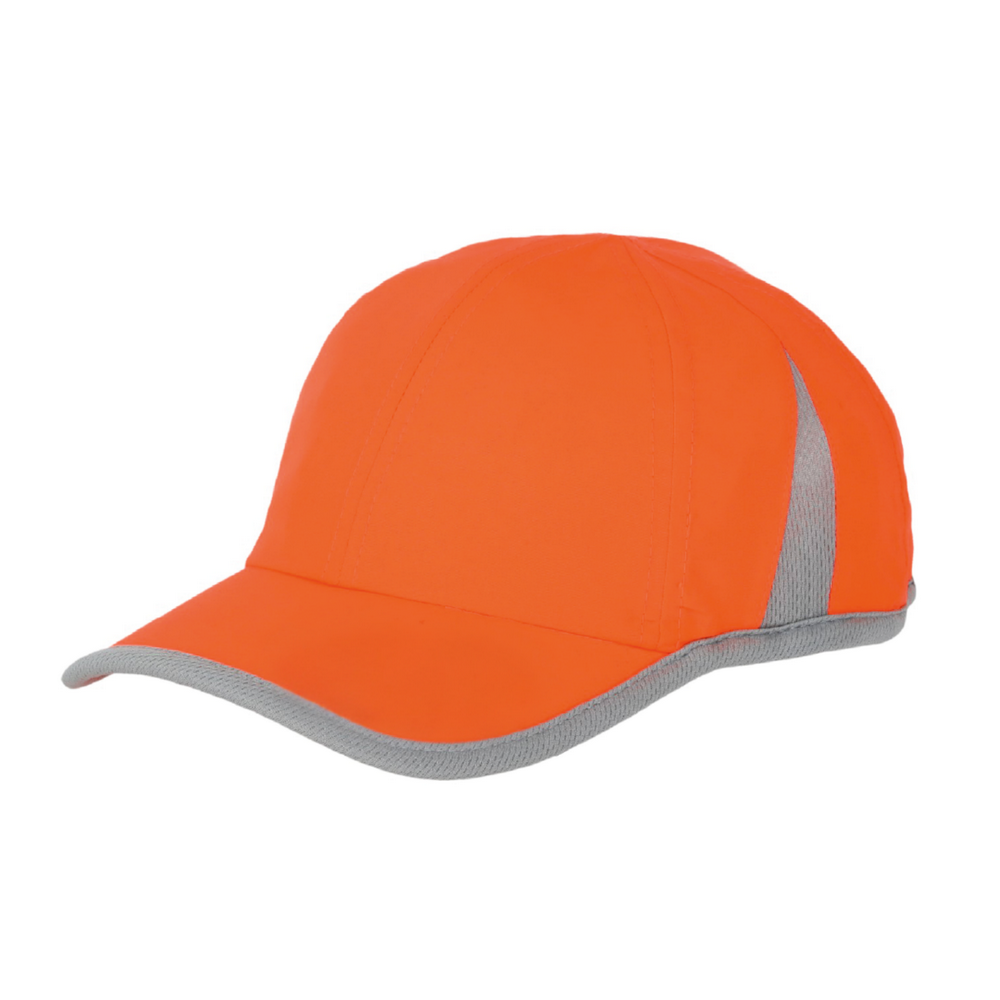 GORRA 100% MICROFIBRA DE poliéster CON AJUSTE CORREDIZO DE CINTURON, RESPIRADORES LATERALES, BANDA ABSORBENTE INTERIOR, FILO GRIS EN LOS COSTADOS, 6 GAJOS, VISERA CURVA.