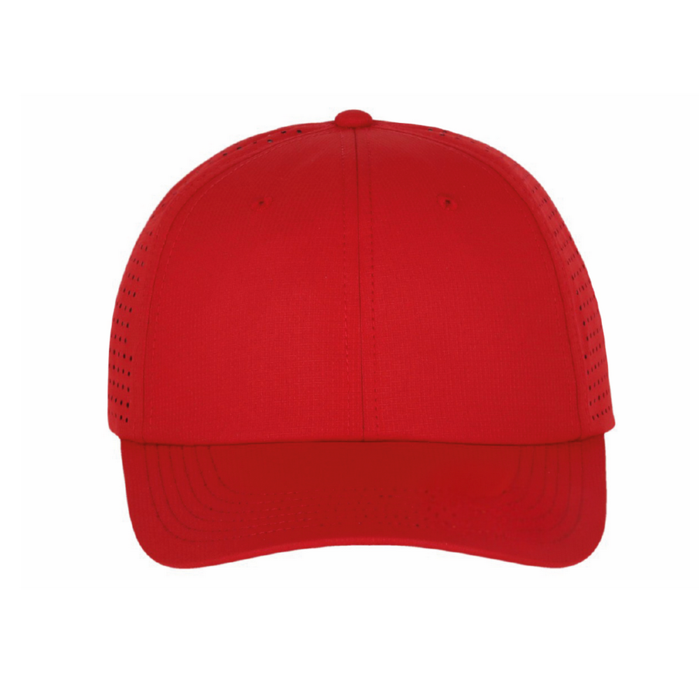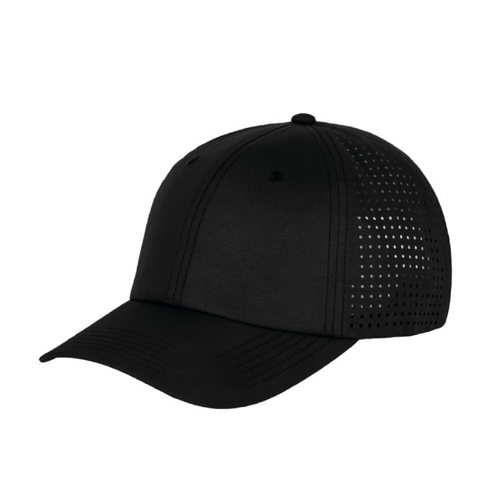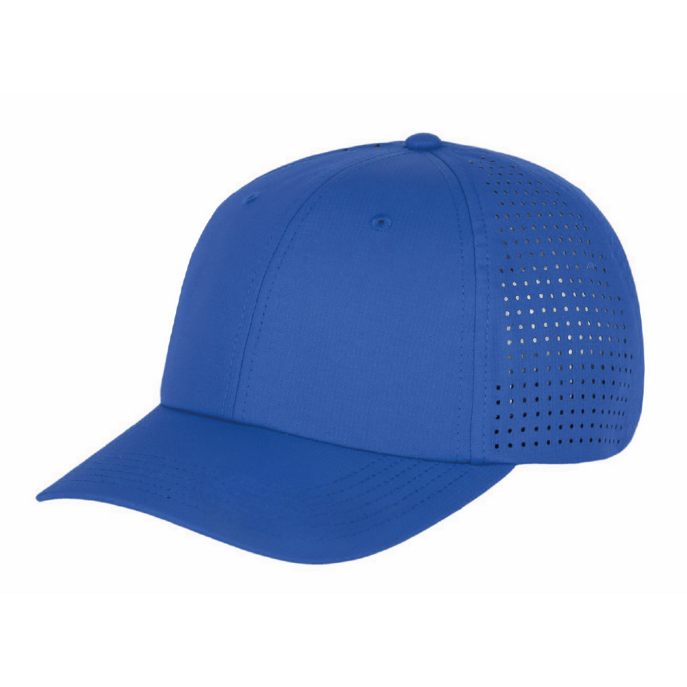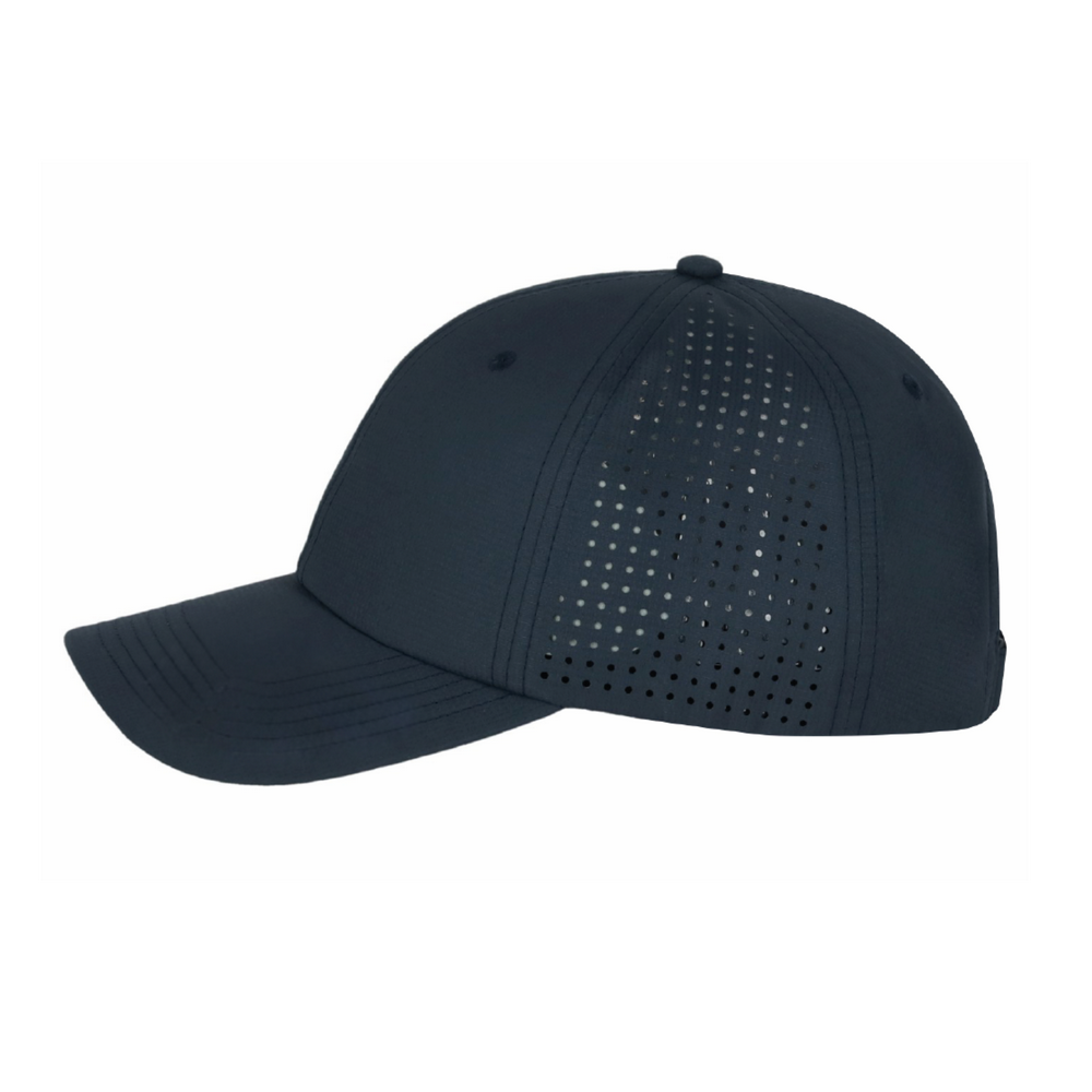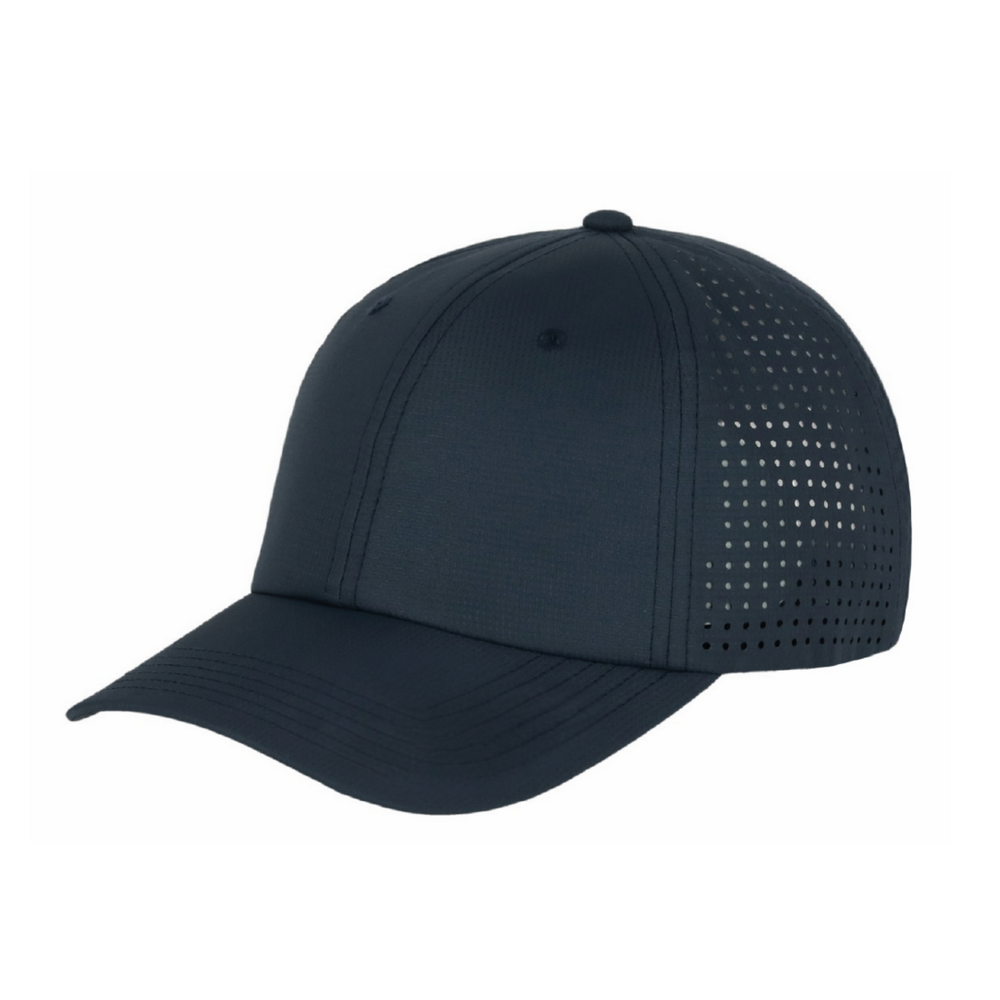 GORRA PREMIUM 100% POLIÉSTER CON AJUSTE DE CINTURON ANTIPELUSA, GAJOS LATERALES MICROPERFORADOS, BANDA INTERIOR ABSORBENTE, 6 GAJOS, VISERA CURVA.