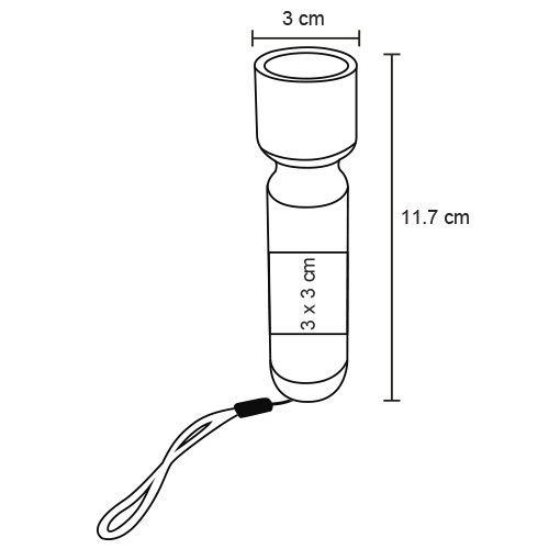 Lámpara LED de metal con botón de presión en la parte inferior, con detalle de color en el cuello y correa de poliéster. Utiliza 3 baterías AAA ( no incluidas).