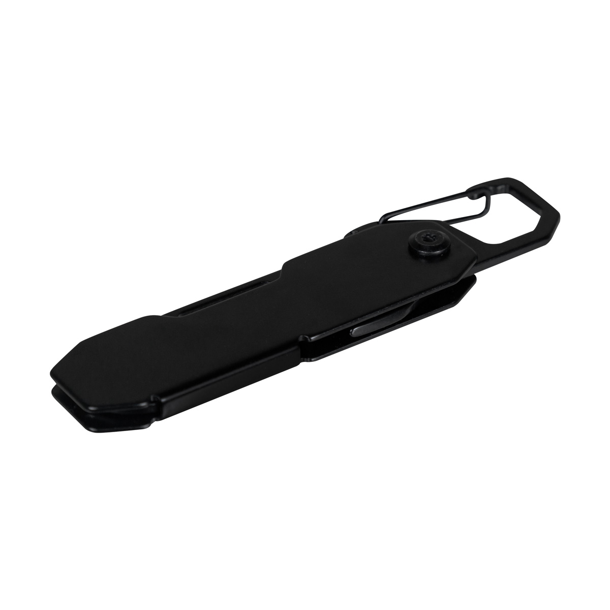 Practica multiherramienta plegable con 7 funciones. Incluye 1 cortador de paquetes, 1 destornillador, 1 destornillador plano, 1 destapador, 1 llave hexagonal de 3 tamanos, 1 llave hexagonal externa de 6 mm y 1 gancho. Incluye caja individual.
