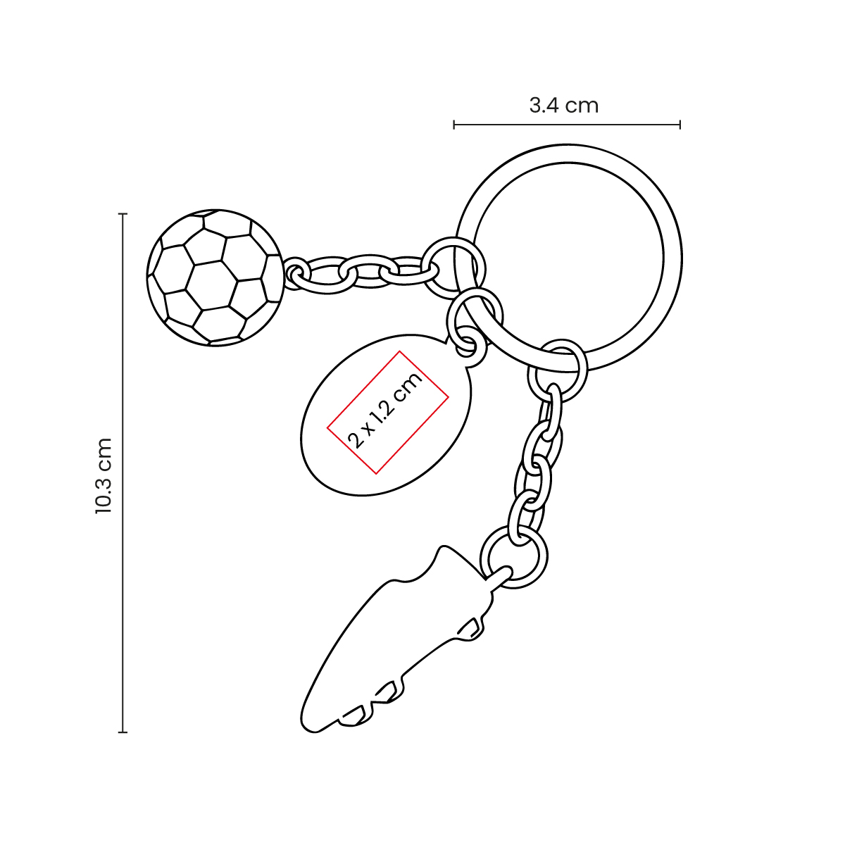 LLAVERO METÁLICO DE FÚTBOL SOCCER. INCLUYE PLACA PARA GRABADO, 1 DIJE DE ZAPATO SOCCER Y 1 DIJE DE BALÓN. SU DISEÑO EVOCA EL ESPÍRITU DEPORTISTA Y LA PASIÓN POR EL FÚTBOL.