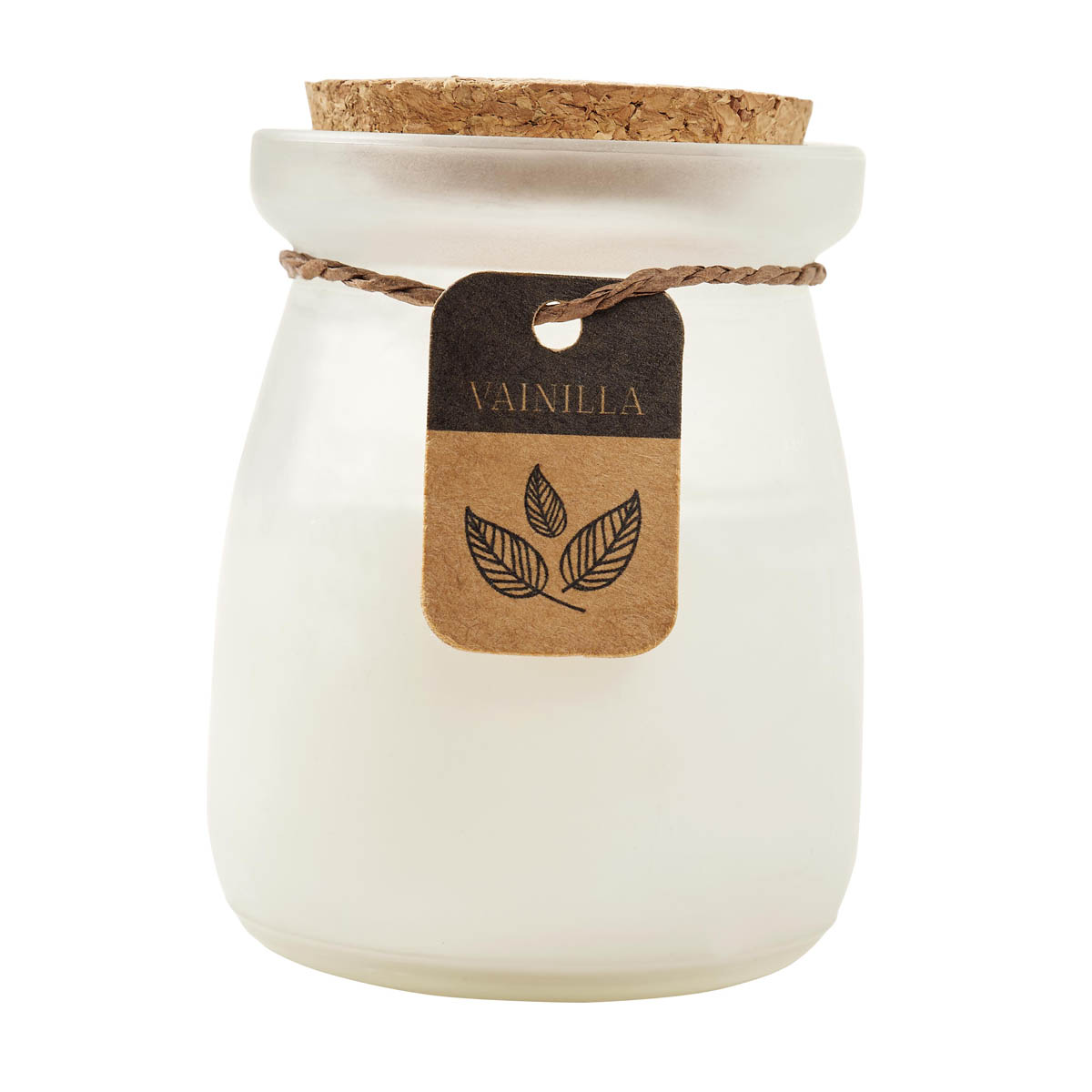 Vela decorativa con tapa de corcho y acabado tipo frosty. A pesar de su tamano compacto, esta vela ofrece un aroma duradero que crea un ambiente calido y relajante. Perfecta para acompanarte en momentos de meditacion, relajacion o simplemente para anadir un toque de serenidad a tu hogar. Aroma a vainilla. Incluye caja individual.