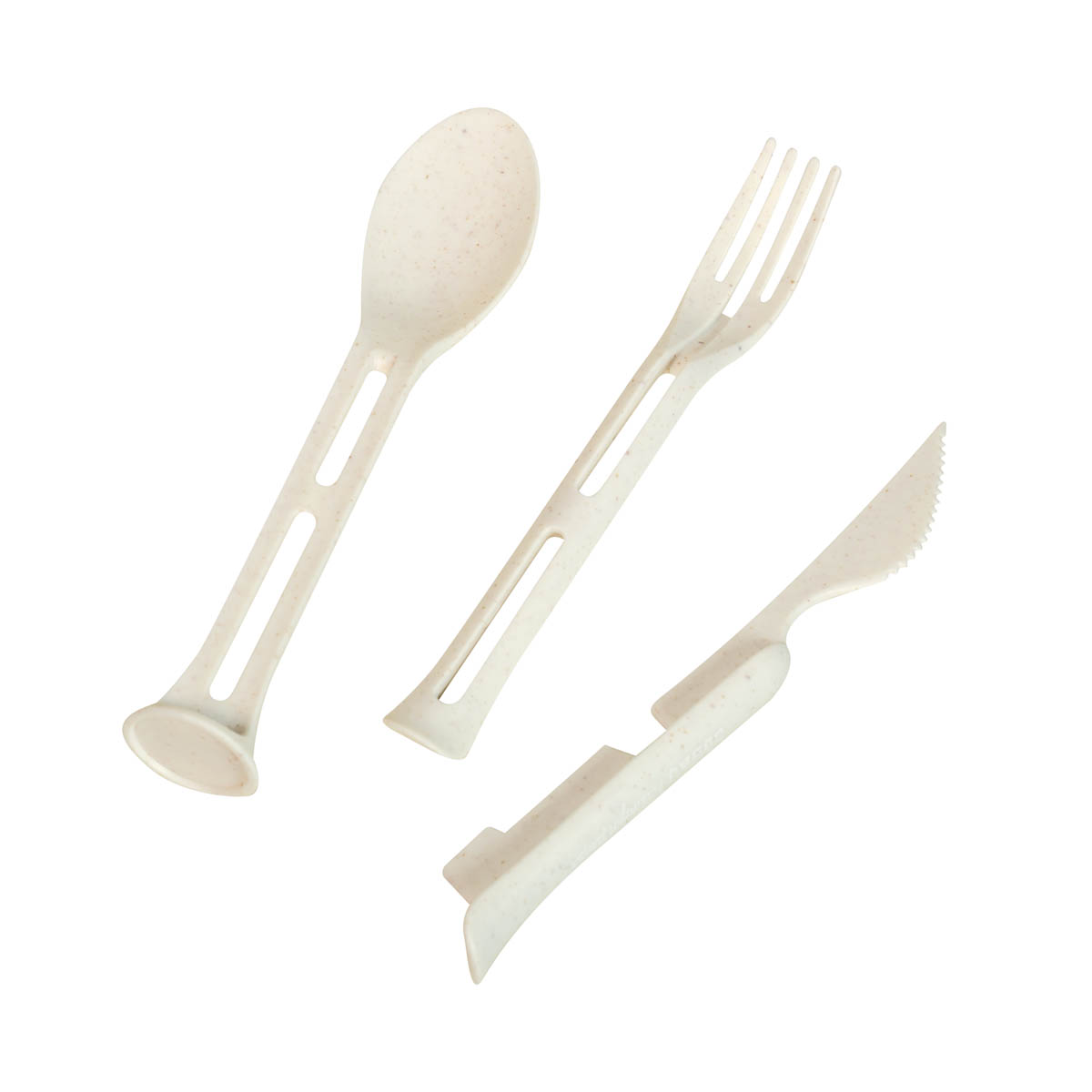 Set de cubiertos 3 en 1 desmontables. Cuenta con cuchillo, tenedor y cuchara. Tiene un peso ligero y es facil de transportar. Incluye caja individual.