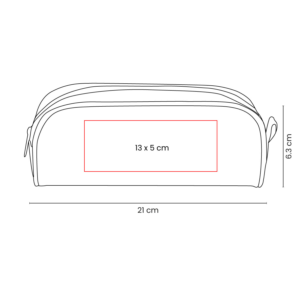 Estuche escolar bitono de poliéster con cierre en el compartimento principal. Ofrece amplio espacio para las herramientas escolares esenciales.