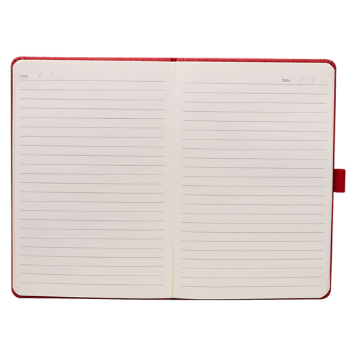 Libreta con 80 hojas de raya. Incluye elastico para cerrar, separador de hojas y elastico para boligrafo.