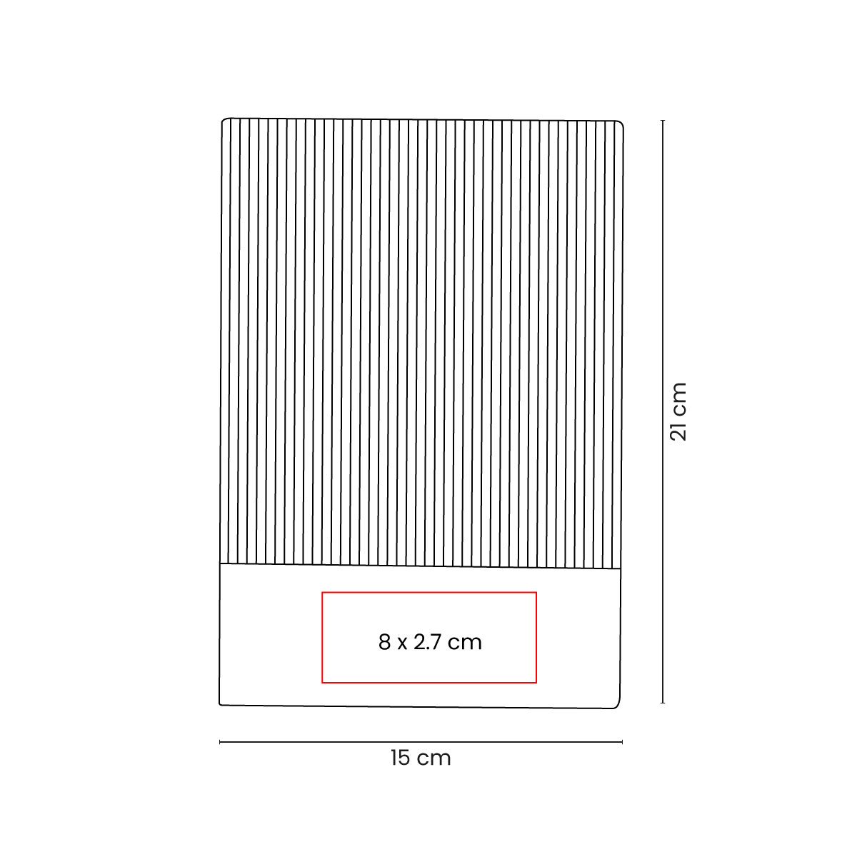 Libreta con 100 hojas a rayas. Pasta que combina dos tipos de textura: una suave con lineas verticales y otra lisa. Los bordes de las hojas son del mismo color que la pasta. Cada pagina esta disenada con un apartado especial para poner la fecha, permitiendote organizar tus notas y escritos de manera cronologica.