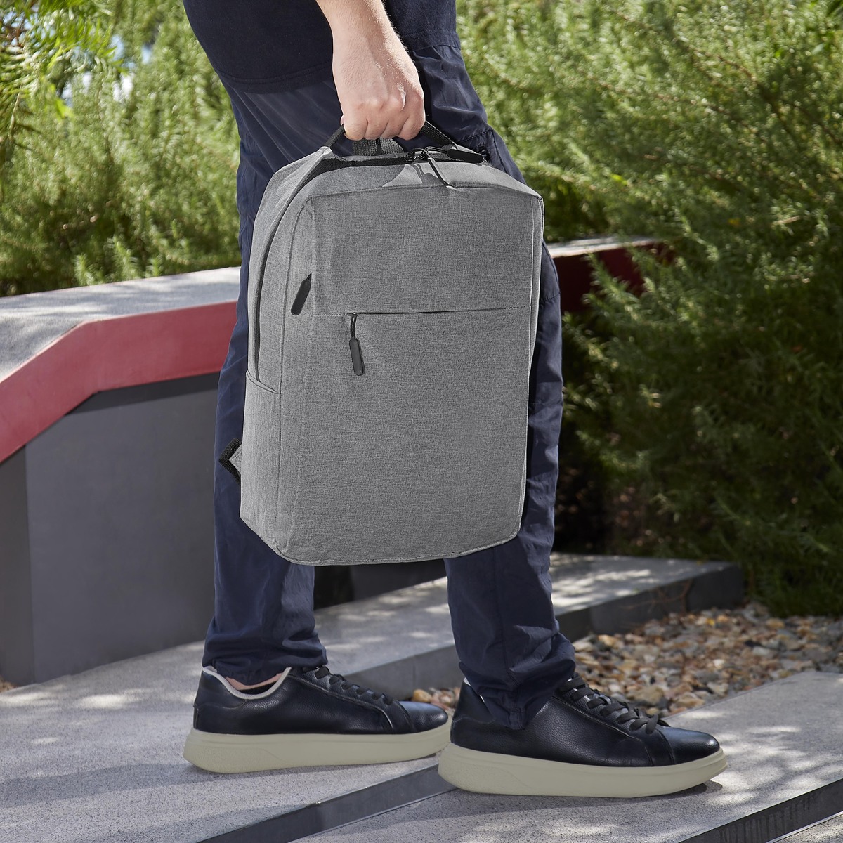 Mochila estilo casual. Bolsa principal con cierre, incluye compartimiento para laptop de hasta 15" y bolsillos organizadores para mantener tus objetos pequenos en orden y con facil acceso. Su diseno agrega un bolsillo frontal con cierre vertical, ideal para llevar libretas pequenas o accesorios indispensables. Ademas, cuenta con otro bolsillo frontal con cierre. En la parte posterior, incluye banda para colocar en trolley.