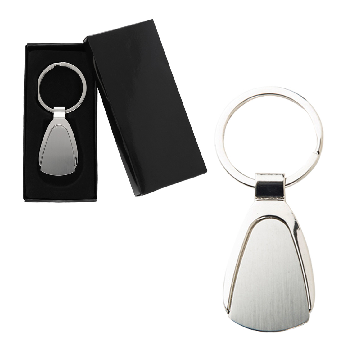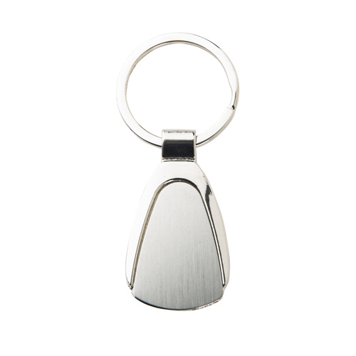 Llavero metálico semi ovalado con relieve y arillo reforzado.