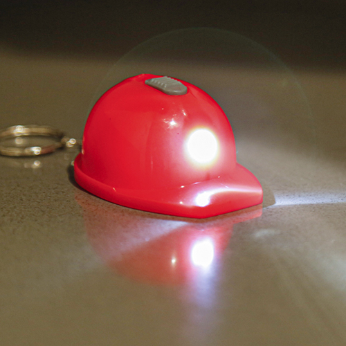 Llavero casco con destapador con lampara de 1 LED. Incluye 3 baterias de boton.