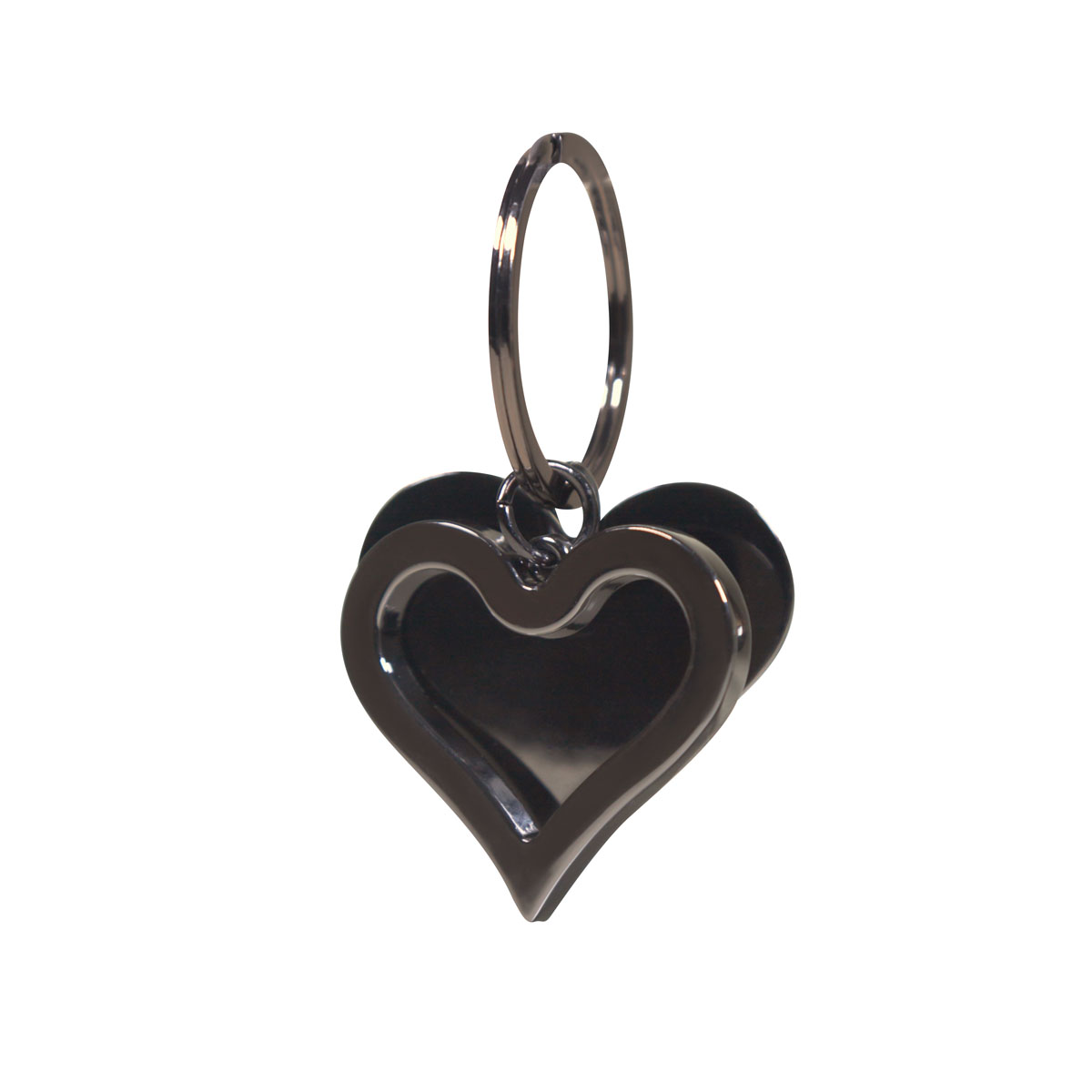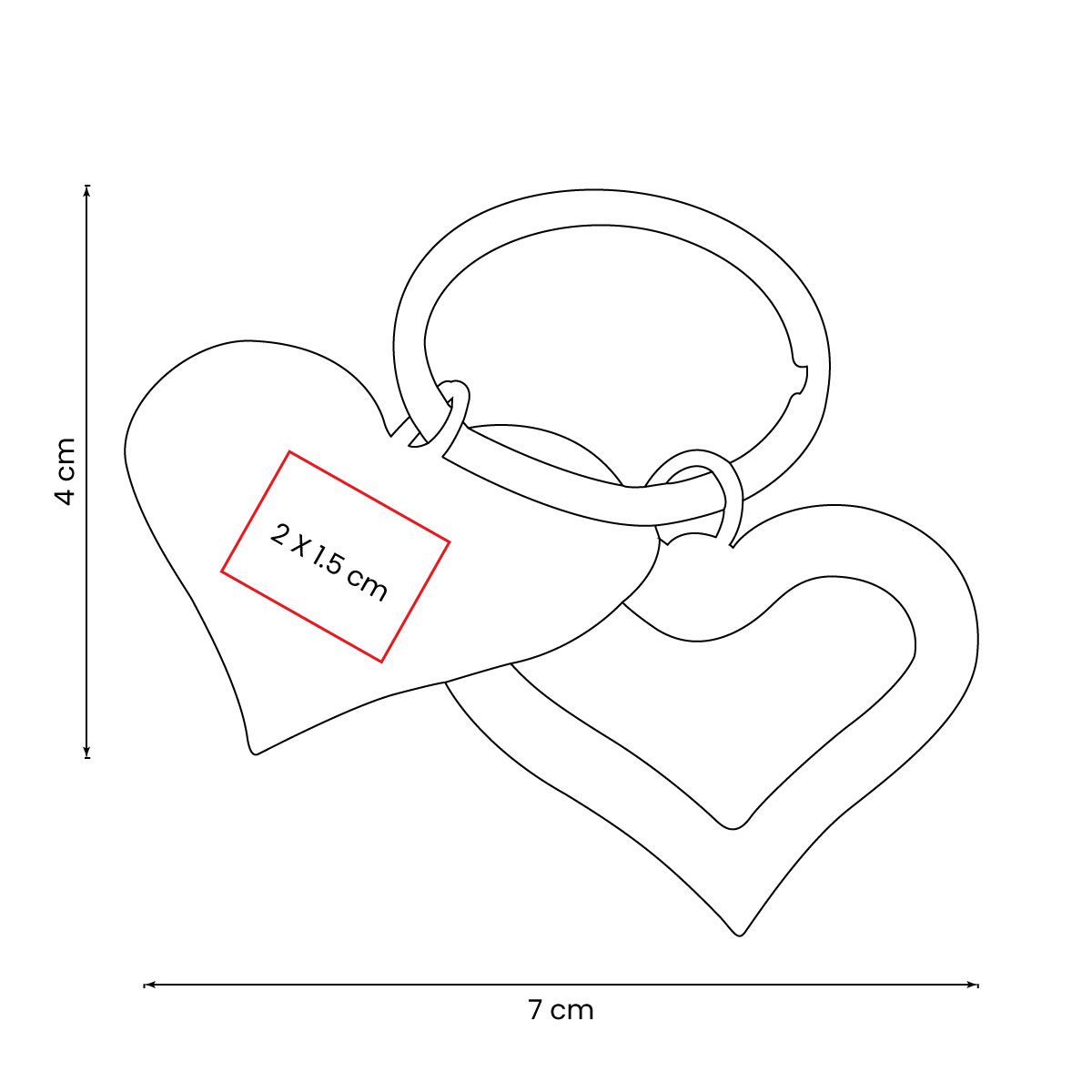 Llavero en forma de corazon con placa para grabado. Incluye caja individual.