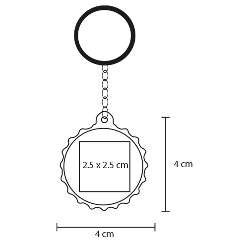 Llavero metalico con destapador en forma de corcholata y aro.