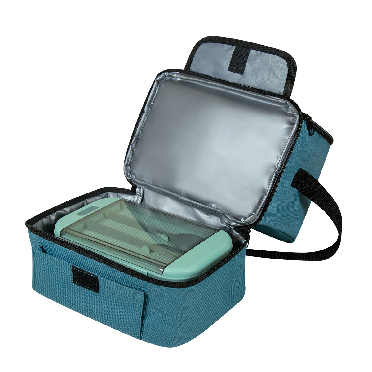 Lonchera con amplio compartimento principal de apertura frontal y practico compartimento secundario en la parte inferior, perfecto para guardar snacks adicionales. El plastificado interior garantiza higiene y facilidad de limpieza. Incluye una bolsa frontal con velcro especialmente disenada para guardar cubiertos, evitando que se mezclen con las demas pertenencias. Sus asas de mano y de hombro, ofrecen versatilidad para llevarla contigo. Capacidad para 12 latas.