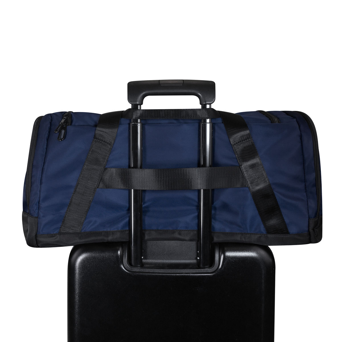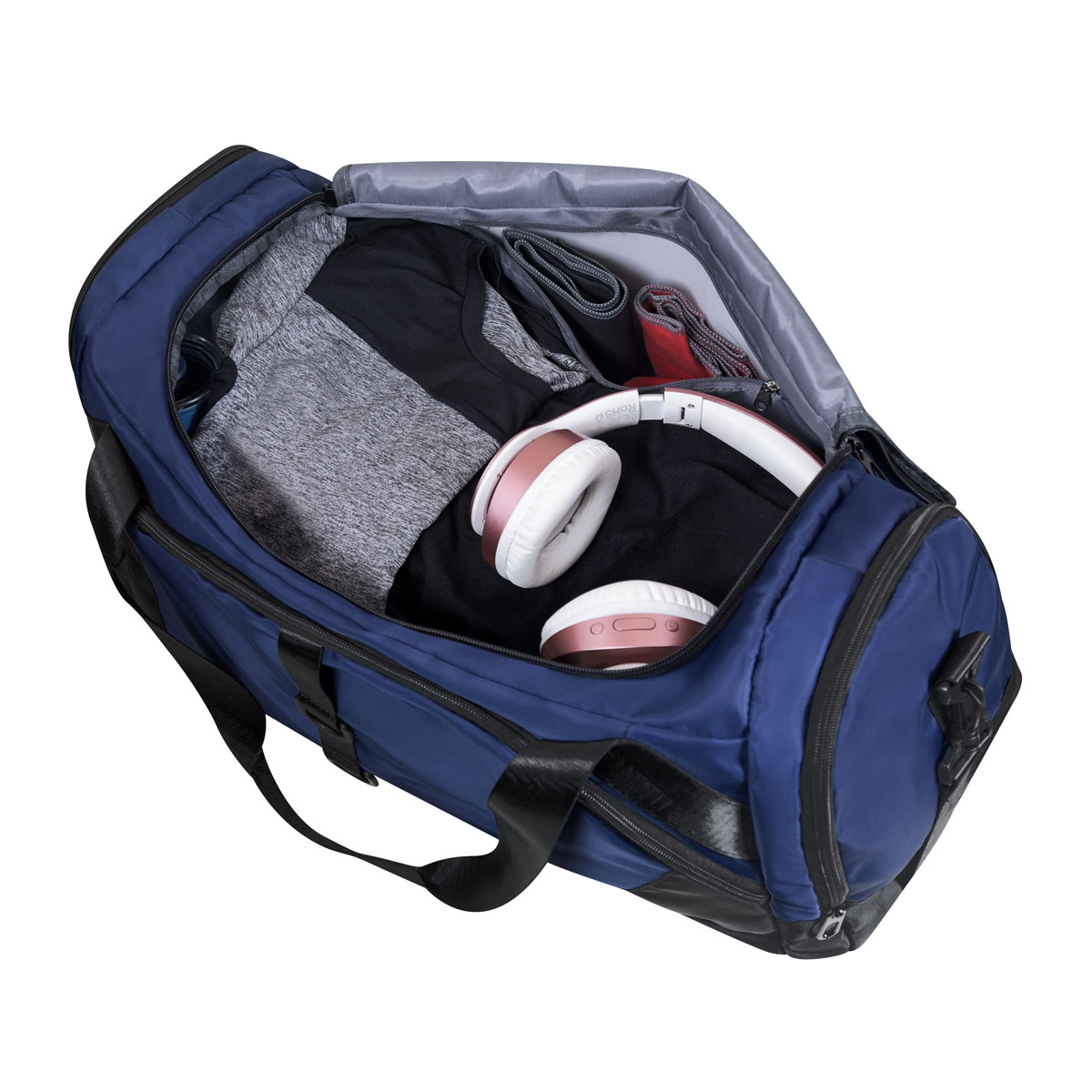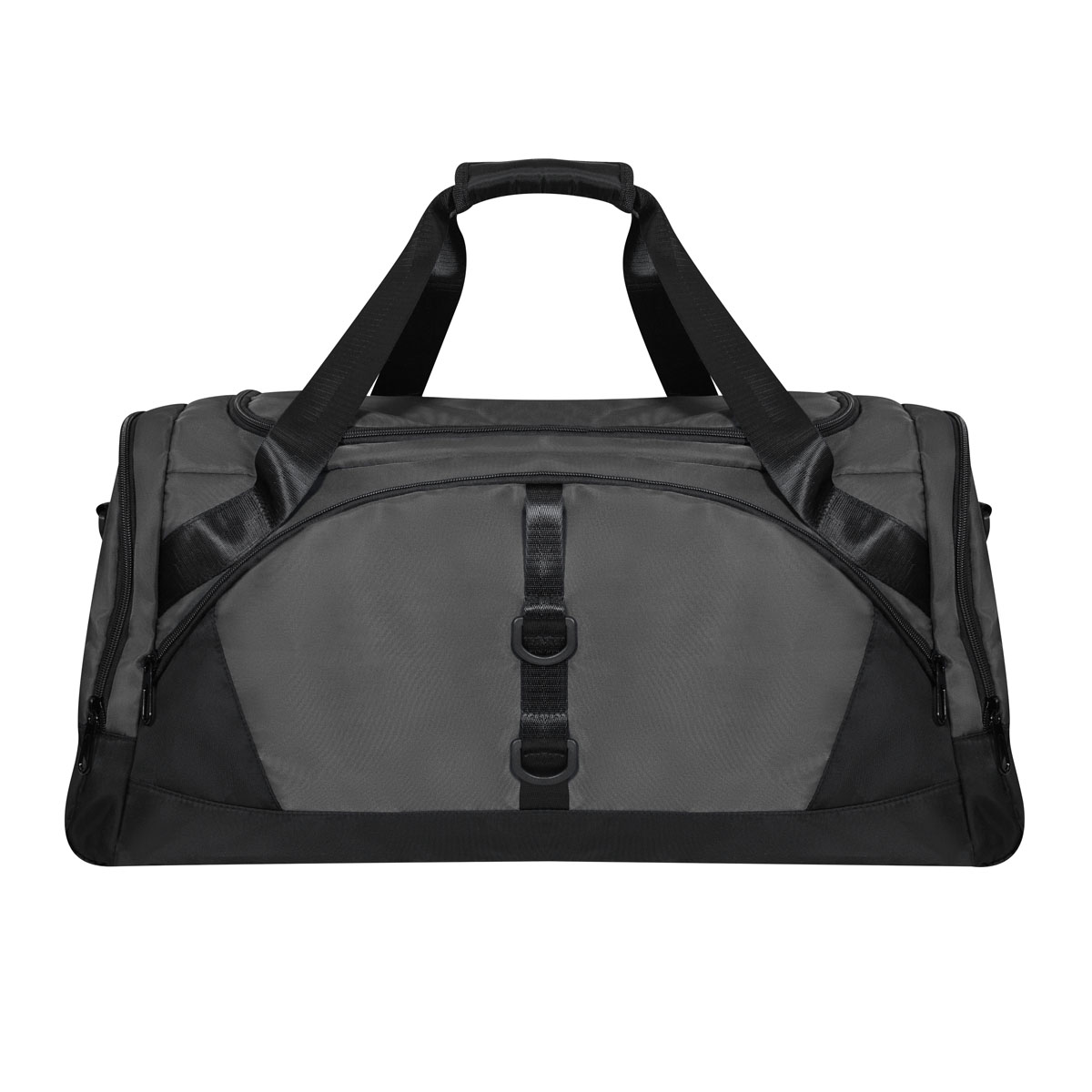 Maleta ideal para tus articulos deportivos. Cuenta con bolsillo frontal con cierre, el cual, permite organizar las pertenencias de forma eficiente. Incluye al centro un par de anillos de plástico ideales para guardar articulos pequenos esenciales. Su bolsillo lateral ofrece un acceso rapido a sus articulos. Ademas, cuenta con una practica zapatera que permite mantener el calzado separado y protegido. Las asas superiores se ajustan a la altura deseada. El asa de mano incluye un protector con velcro, de esta manera podra llevarla comodamente. El interior de la maleta incluye un practico bolsillo impermeable, en el que podra resguardar prendas humedas, protegiendo el resto de sus articulos.