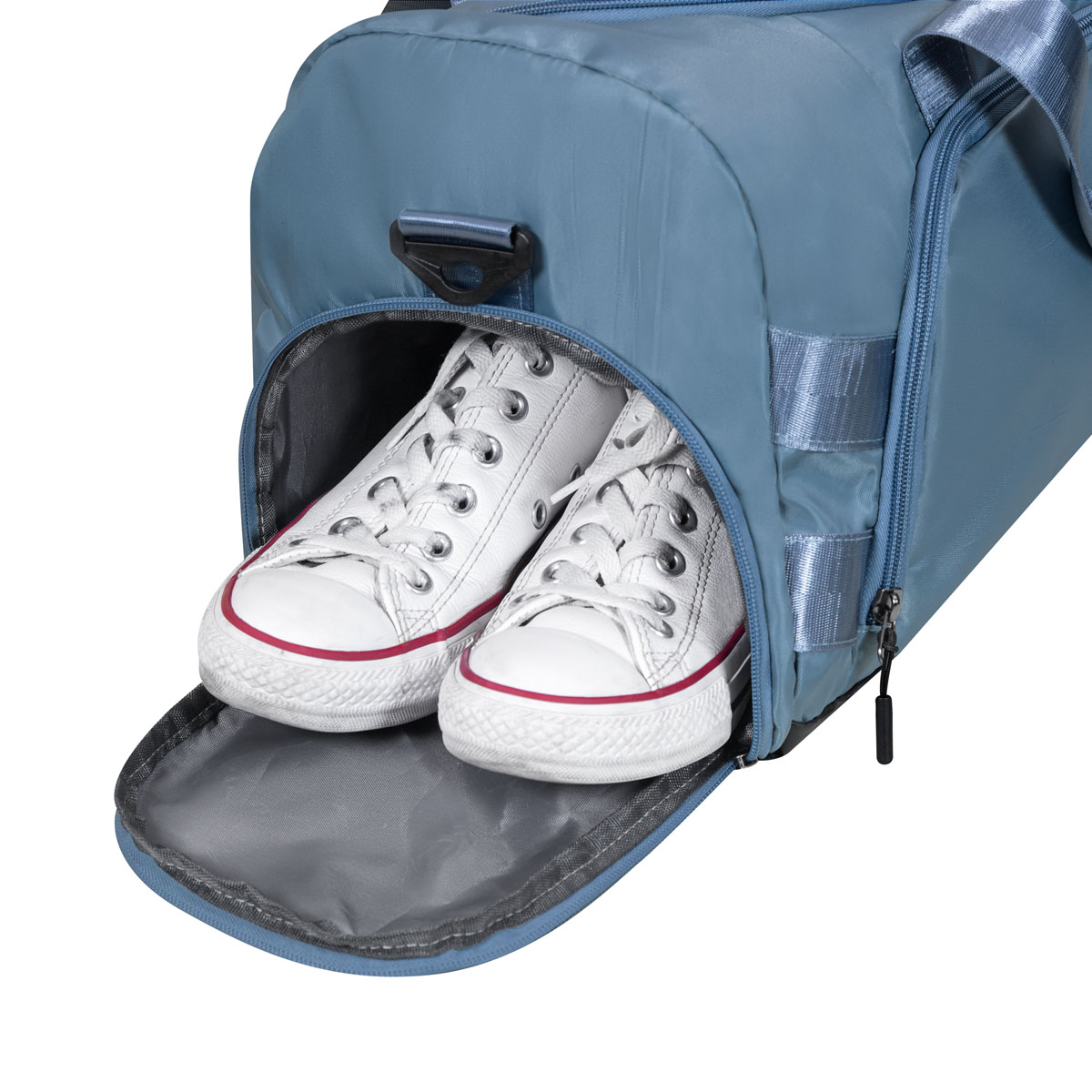 Maleta deportiva con un bolsillo frontal amplio, que te permite organizar tus pertenencias de forma comoda. Su bolsillo lateral, ofrece un acceso rapido para articulos esenciales. Ademas, la zapatera es ideal para mantener tu calzado separado y protegido. Las asas superiores se ajustan a la altura deseada y el asa de mano, tiene un protector con broche de velcro para mayor comodidad. En su interior cuenta con un bolsillo impermeable. Cuenta con banda para trolley