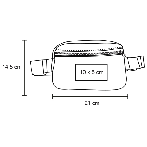 Cangurera de doble cierre con 1 compartimento principal y bolsa interna, 1 compartimento trasero, correa de doble ajuste con broche de seguridad.