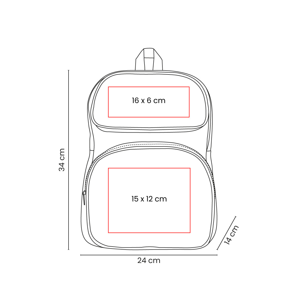 Área de impresión: 16 x 6 cm (bolsa superior)