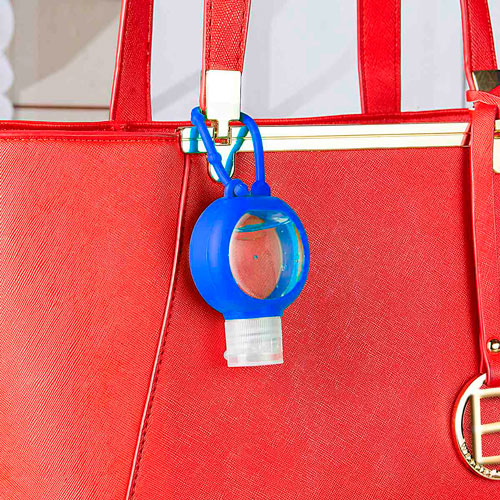 Gel sanitizante portatil y recargable. Incluye sujetador de silicon. Alcohol al 55%.