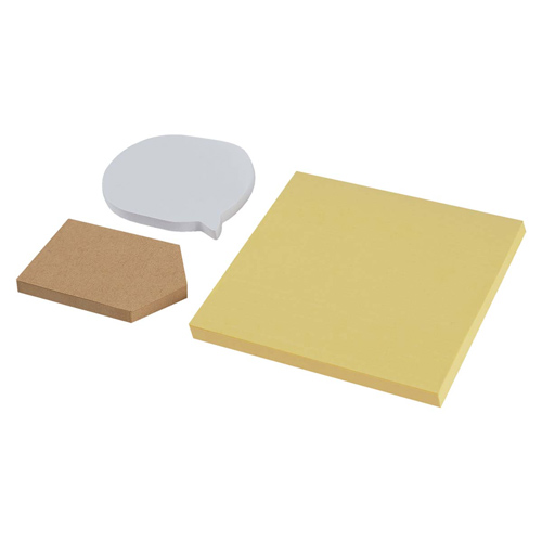 Incluye 3 block de notas adheribles de diferentes formas y colores.