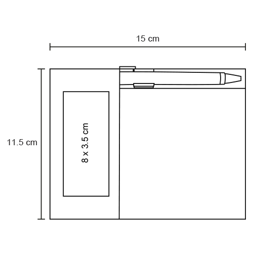 Block de notas ecológico con 100 hojas blancas, notas adhesivas y bolígrafo.