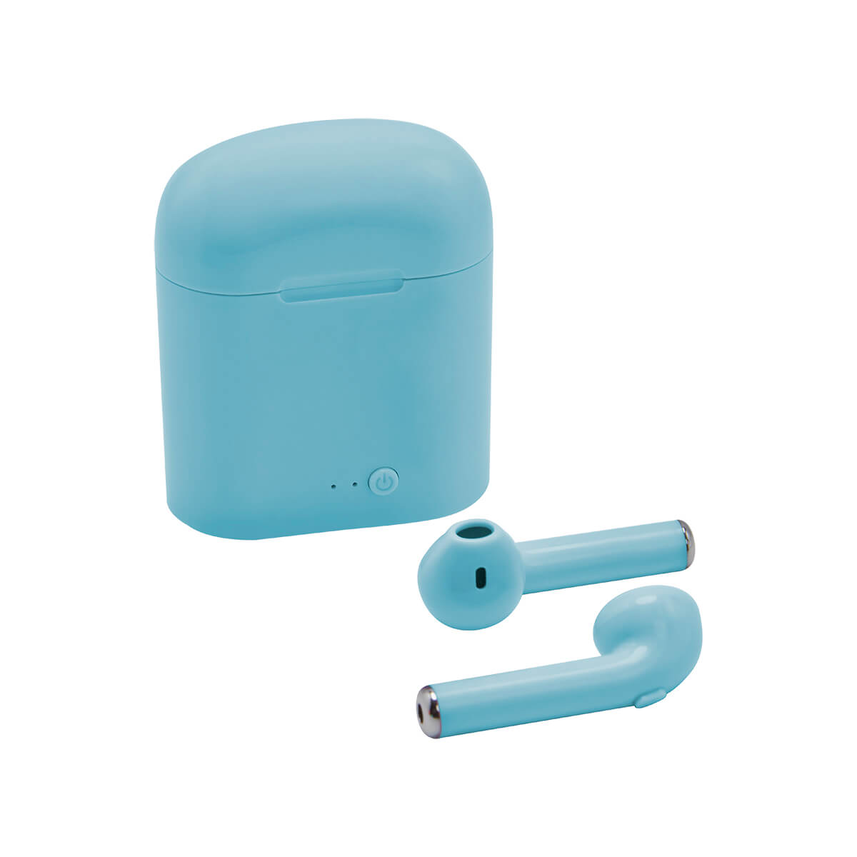Audifonos bluetooth inalambricos con bateria recargable. Funcion manos libres. Reproduccion de musica 2 hrs aproximadamente. Incluye estuche para recargar los audifonos y cable cargador USB.