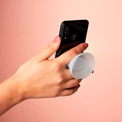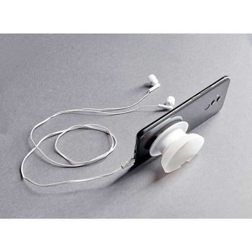 Audifonos enrollables, base con ventosa para facil sujecion. Funcion soporte para smartphone.