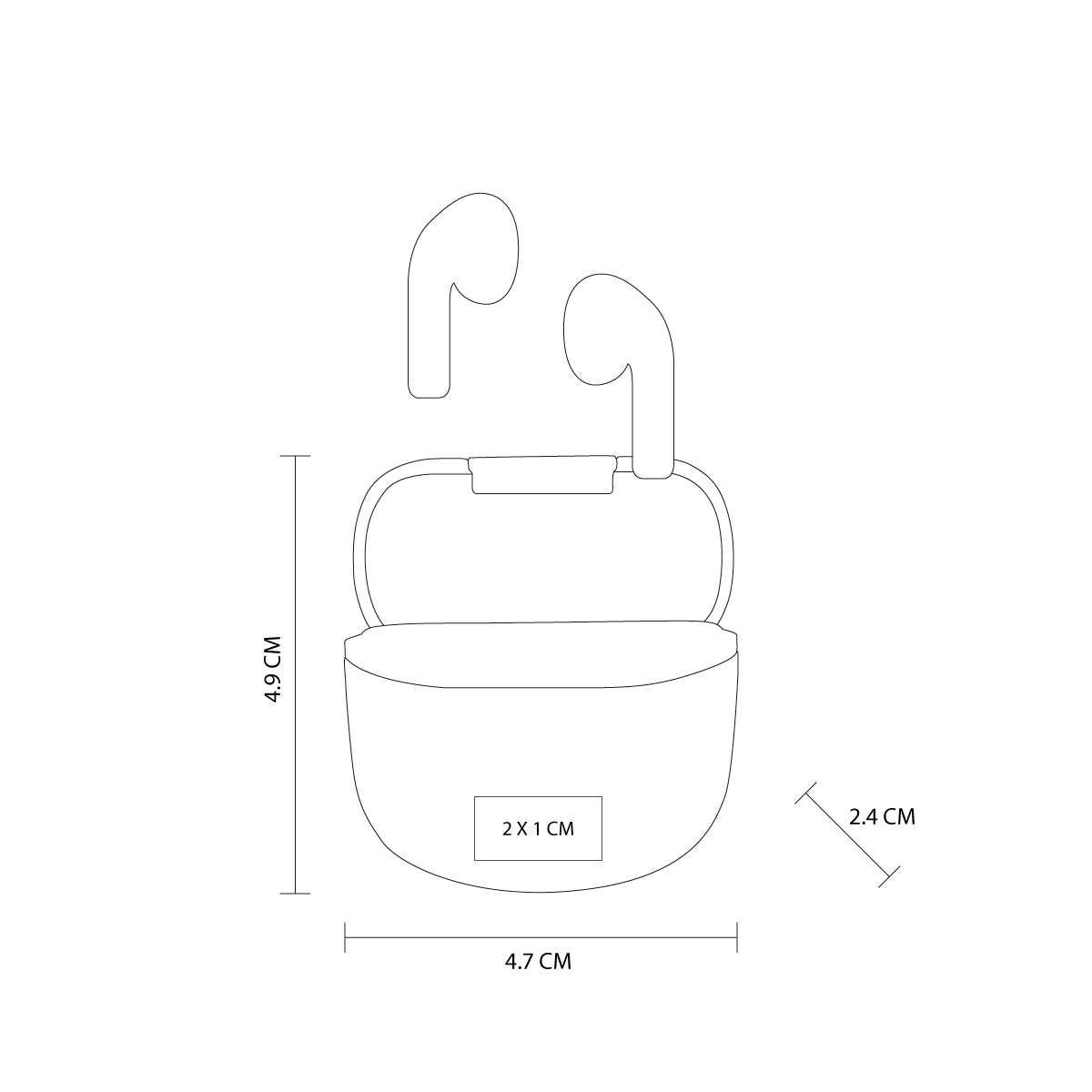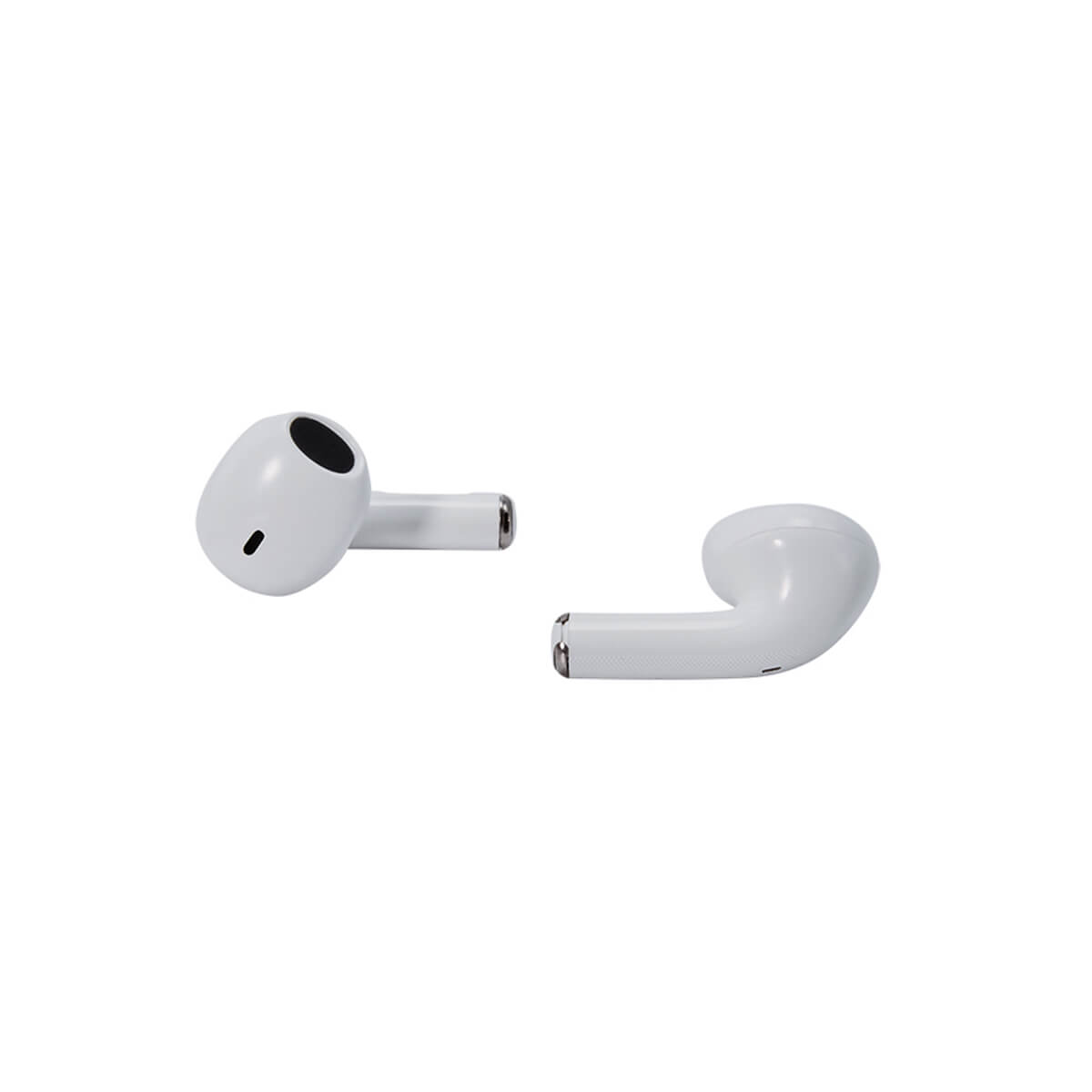 Audifonos bluetooth con base recargable. Controles integrados touch para llamadas, volumen y reproduccion de audio. Reproduccion de musica 2 a 3 hrs aproximadamente. Rango de conexion de 10 metros. Incluye estuche de carga y cable cargador USB.