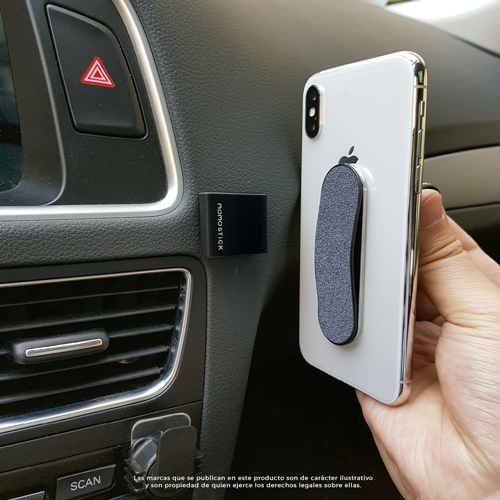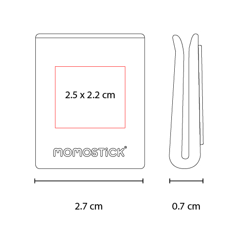 Momo clip con pegamento 3M doble cara, pega en cualquier superficie plana. Facil deslizamiento con cualquier dispositivo que cuente con un Momo Stick.