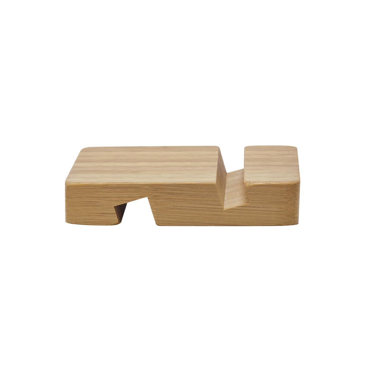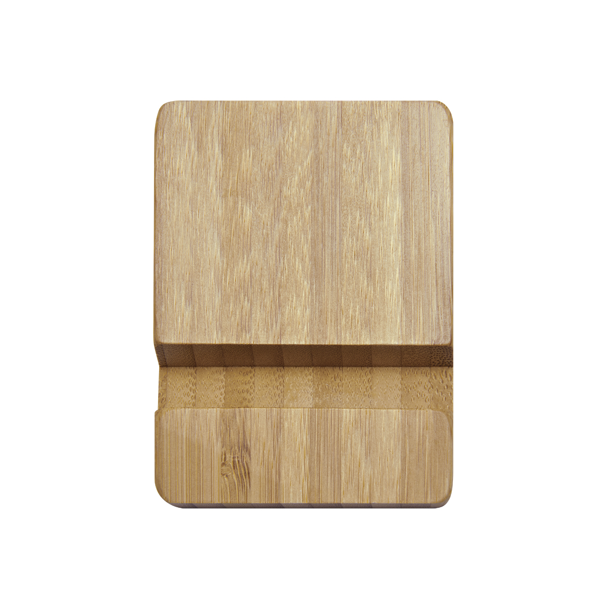 Soporte de bambú para smartphone o tablet. Incluye dos ranuras con diferente grosor para adaptarse a diversos dispositivos. El bambú es un producto natural el cual puede presentar variaciones en tonalidades y vetas.