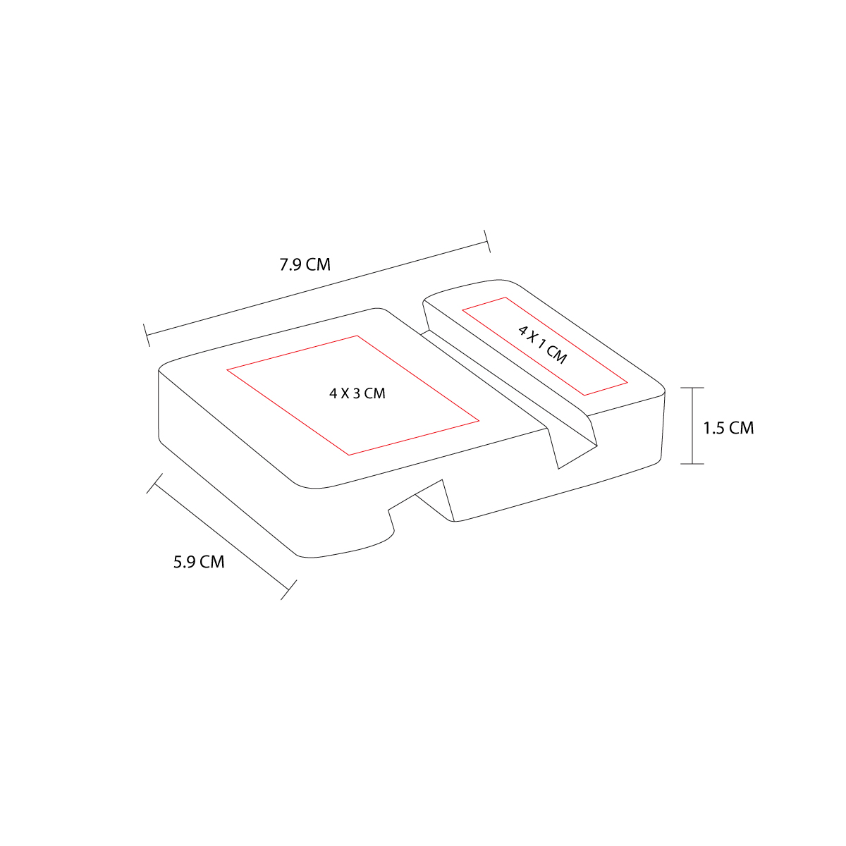 Área de impresión: 4 x 3 cm Arriba / 4 x 1 cm Abajo