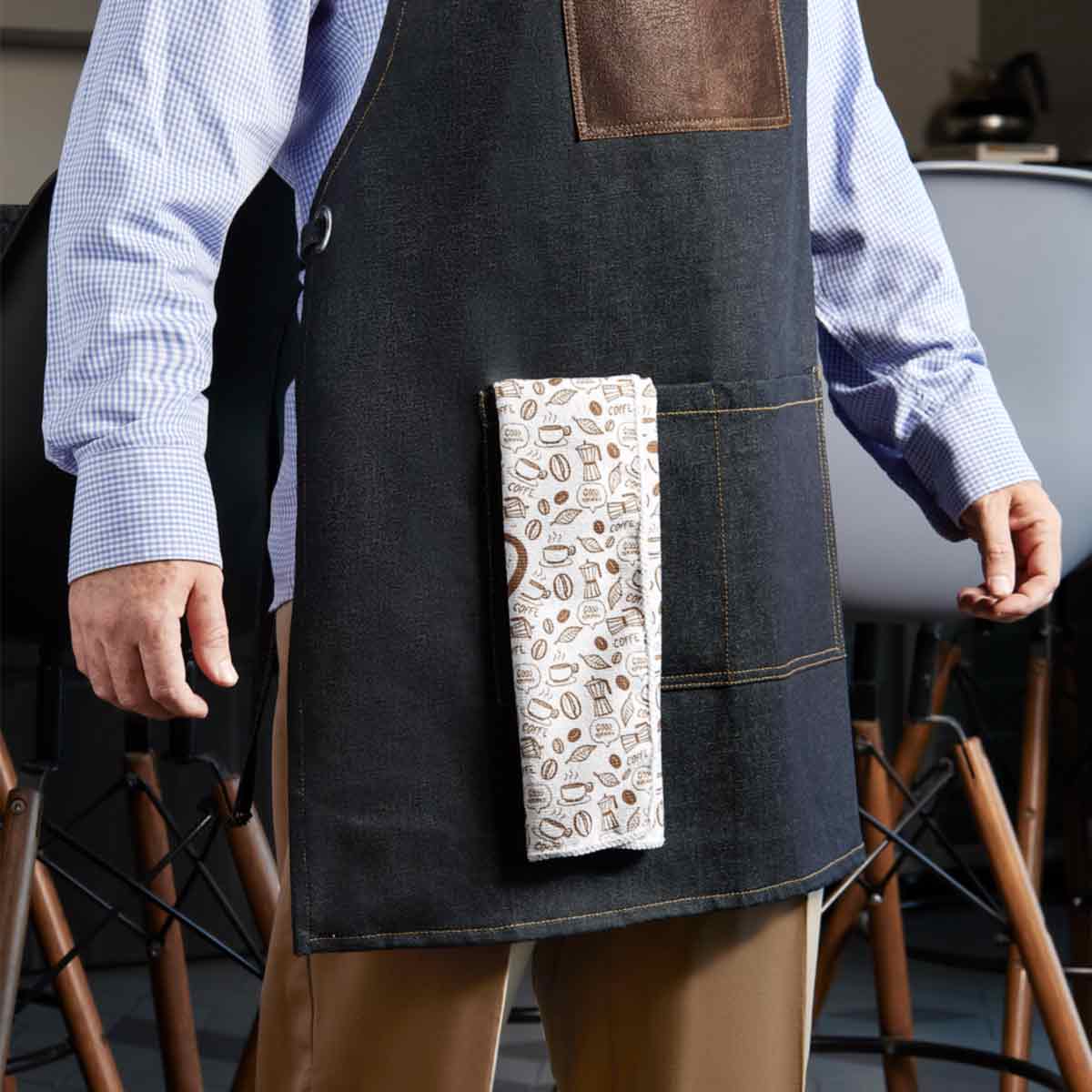 Incluye 3 bolsillos frontales y correa para cuello ajustable por medio de broche metalico.