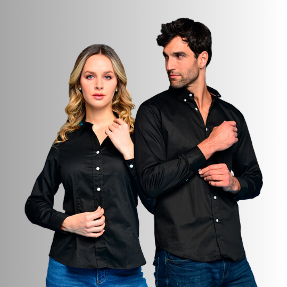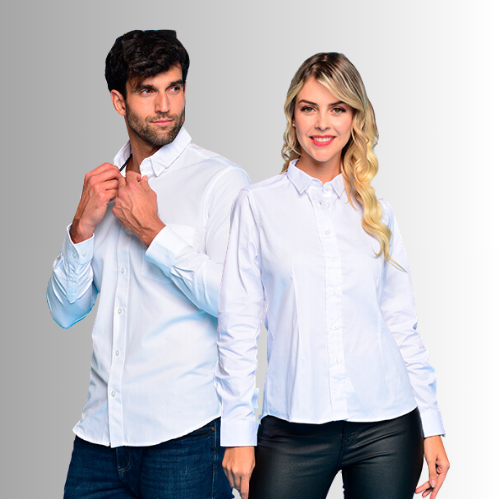 CAMISA 60% ALGODÓN, 40 poliésterFABRICADO EN: TELA SUAVE AL TACTO, CORTE, DAMA Y CABALLERO, CUELLO AJUSTABLE Y COMODO, CUELLO, PUÑO Y BOTONES REFORZADOS, BOTONES EN PUÑOS, BOLSILLO EN CAMISA, MANGA LARGA